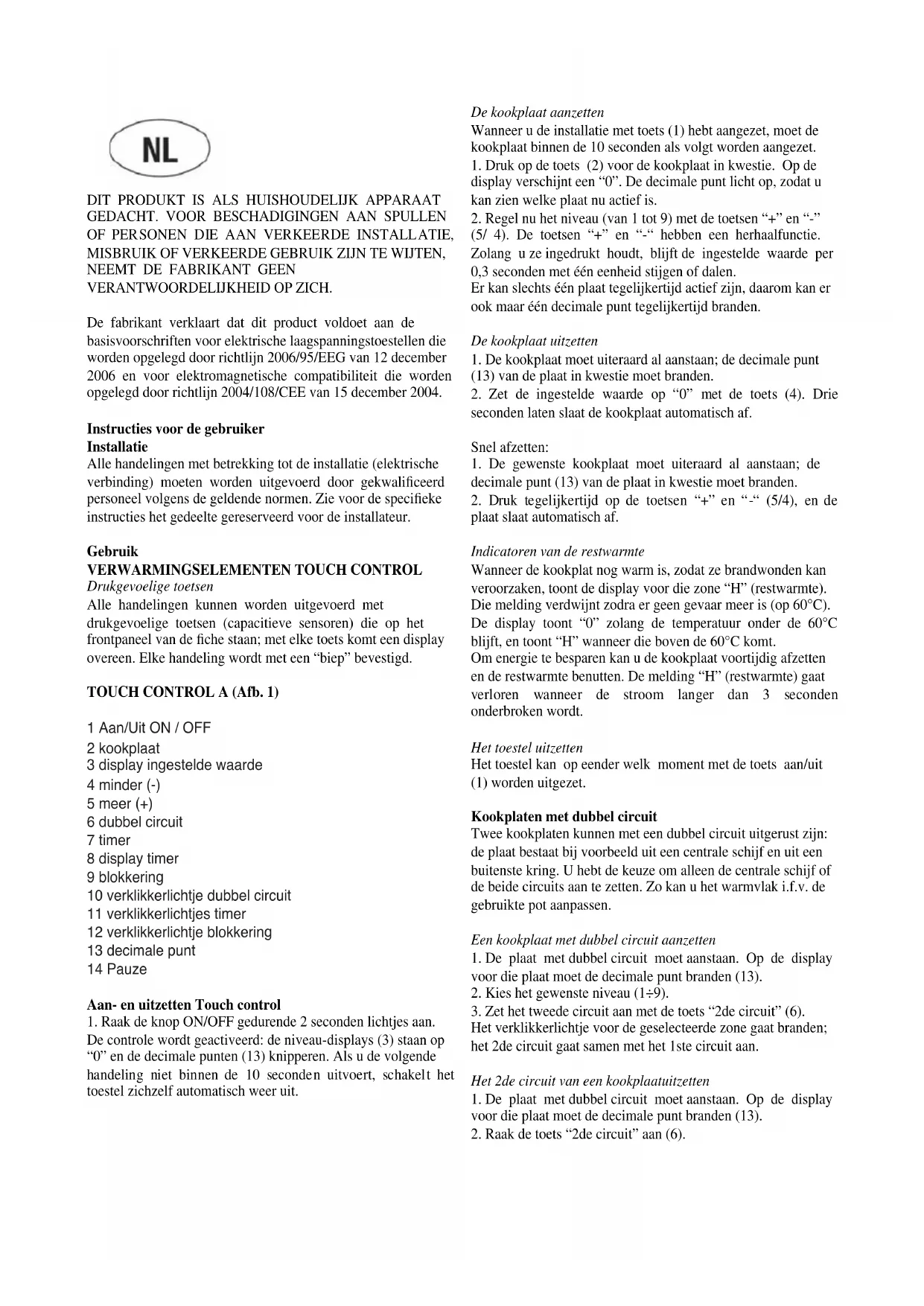kookplaat binnen de 10 seconden als volgt worden aangezet.
