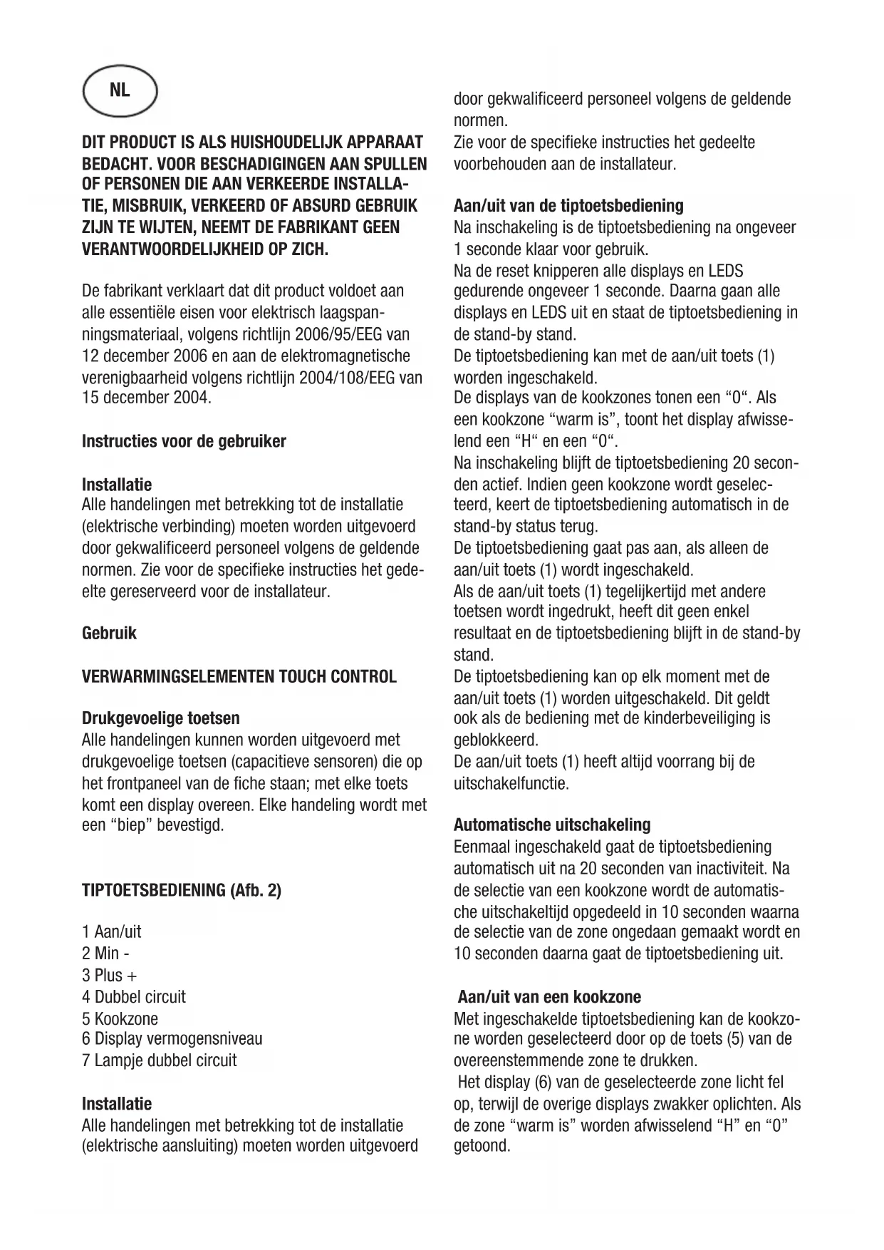 TIPTOETSBEDIENING (Afb. 2)