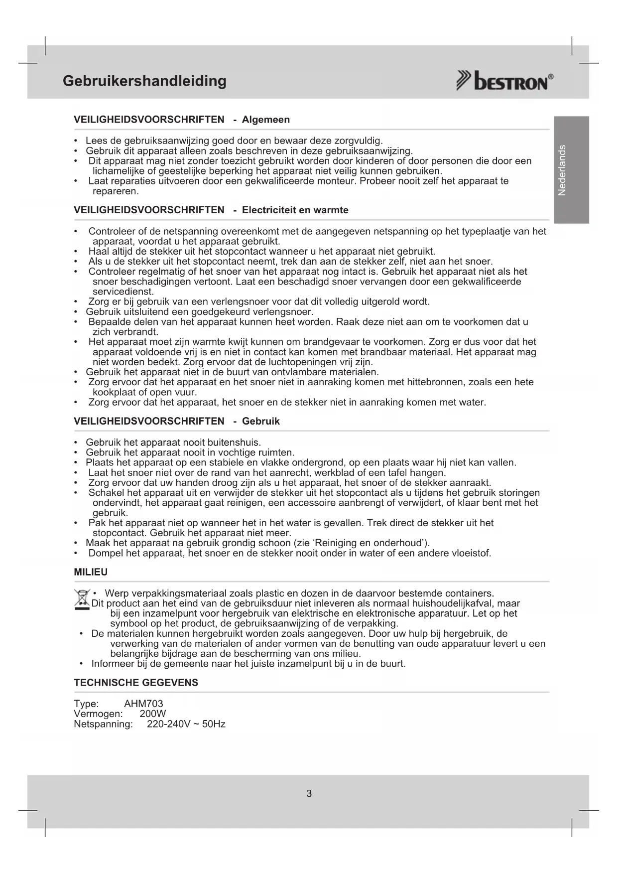 GEBRUIKSAANWIJZING AHM703 BESTRON