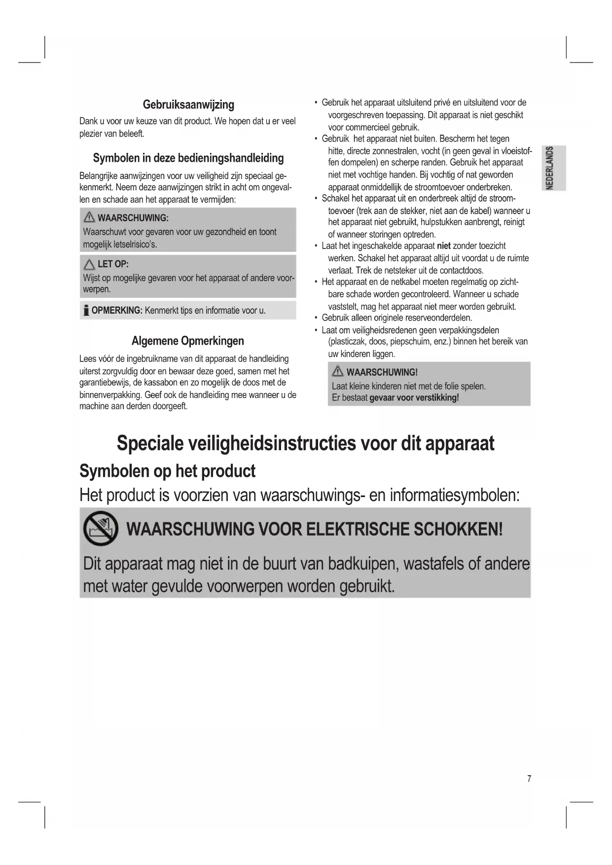 Speciale veiligheidsinstructies voor dit apparaat