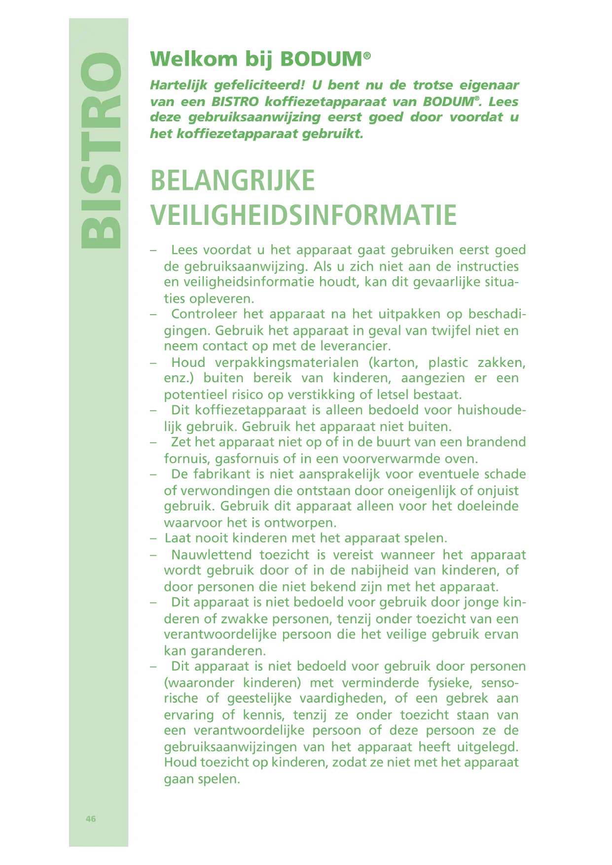 GEBRUIKSAANWIJZING Bistro 11462 BODUM