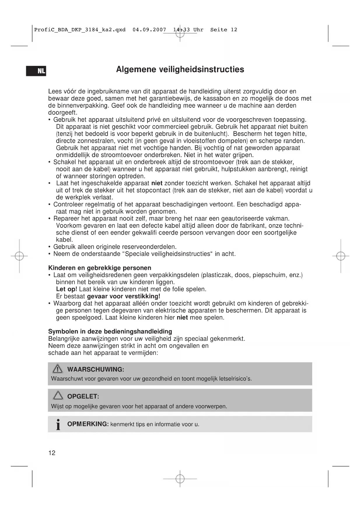 D ProfiC_BDA_DKP_3184_ka2.qxd 04.09.2007 14:33 Uhr Seite 11Algemene veiligheidsinstructies