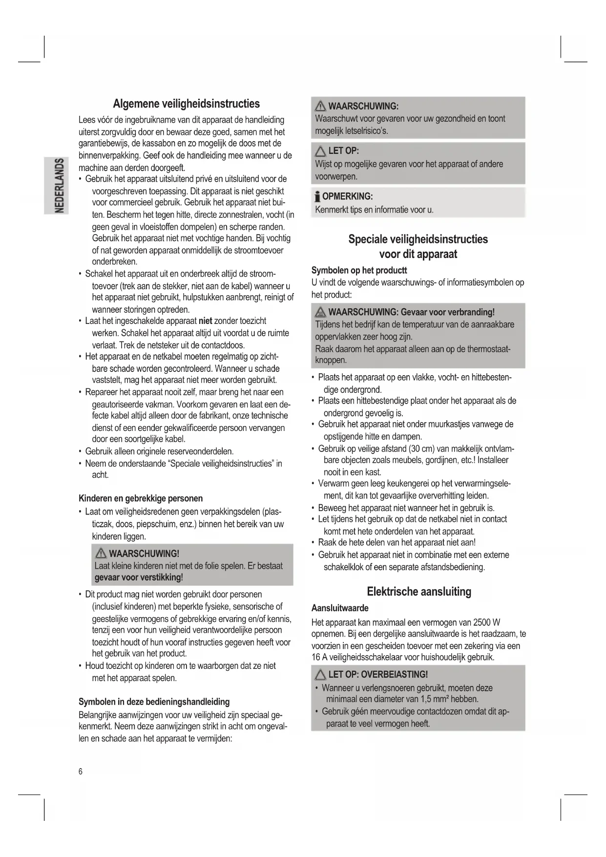 • Neem de onderstaande “Speciale veiligheidsinstructies” in