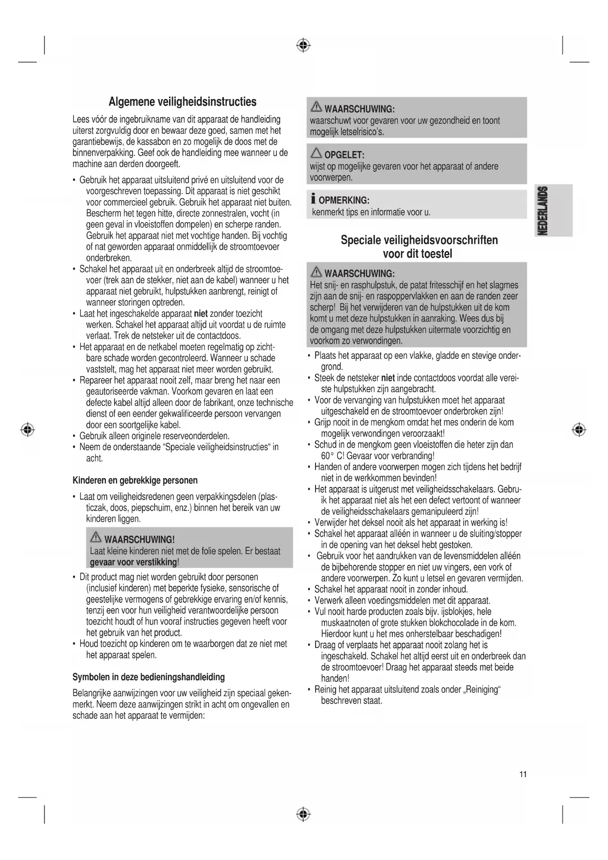 NEDERLANDS Algemene veiligheidsinstructies