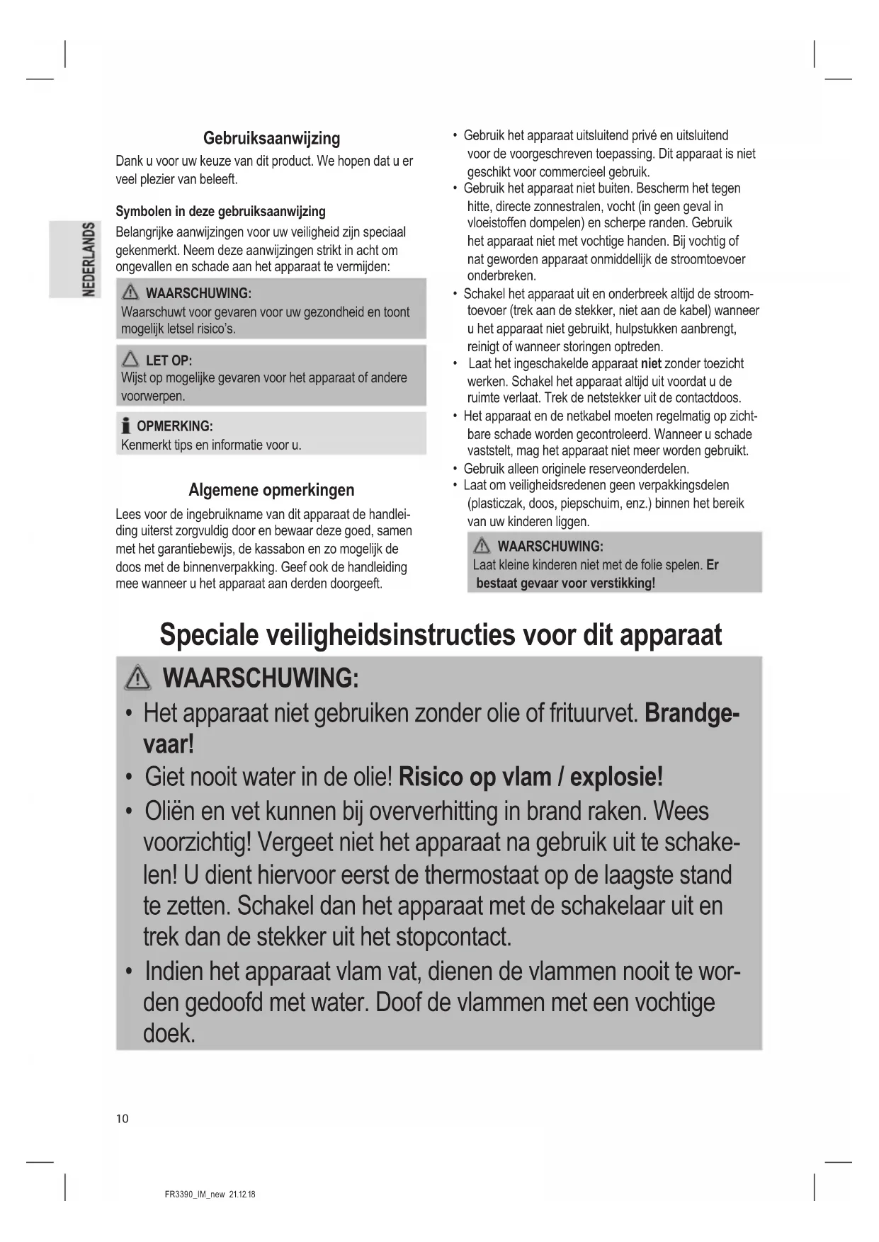 • Kinderen mogen niet met het apparaat spelen.FR3390_IM_new 21.12.18
