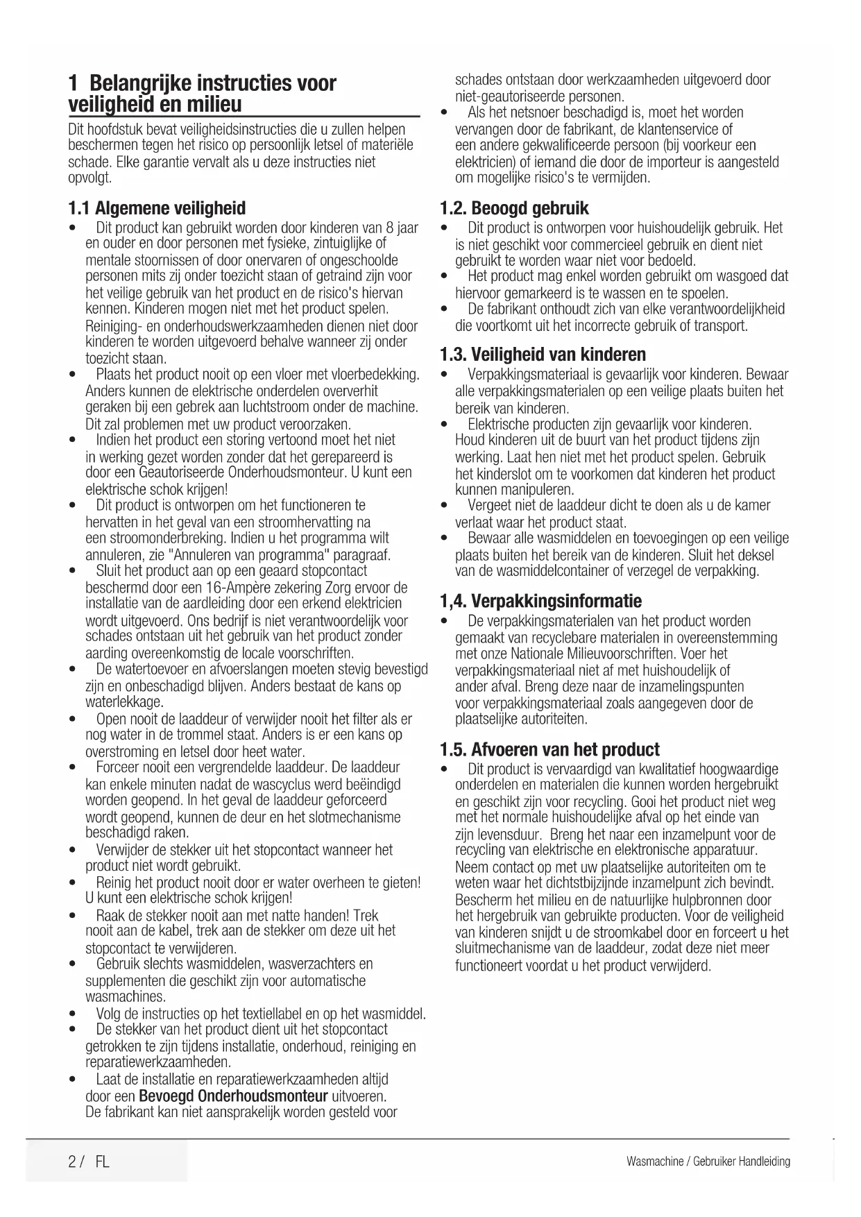 User’s Manual2 / FL Wasmachine / Gebruiker Handleiding 1 Belangrijke instructies voor