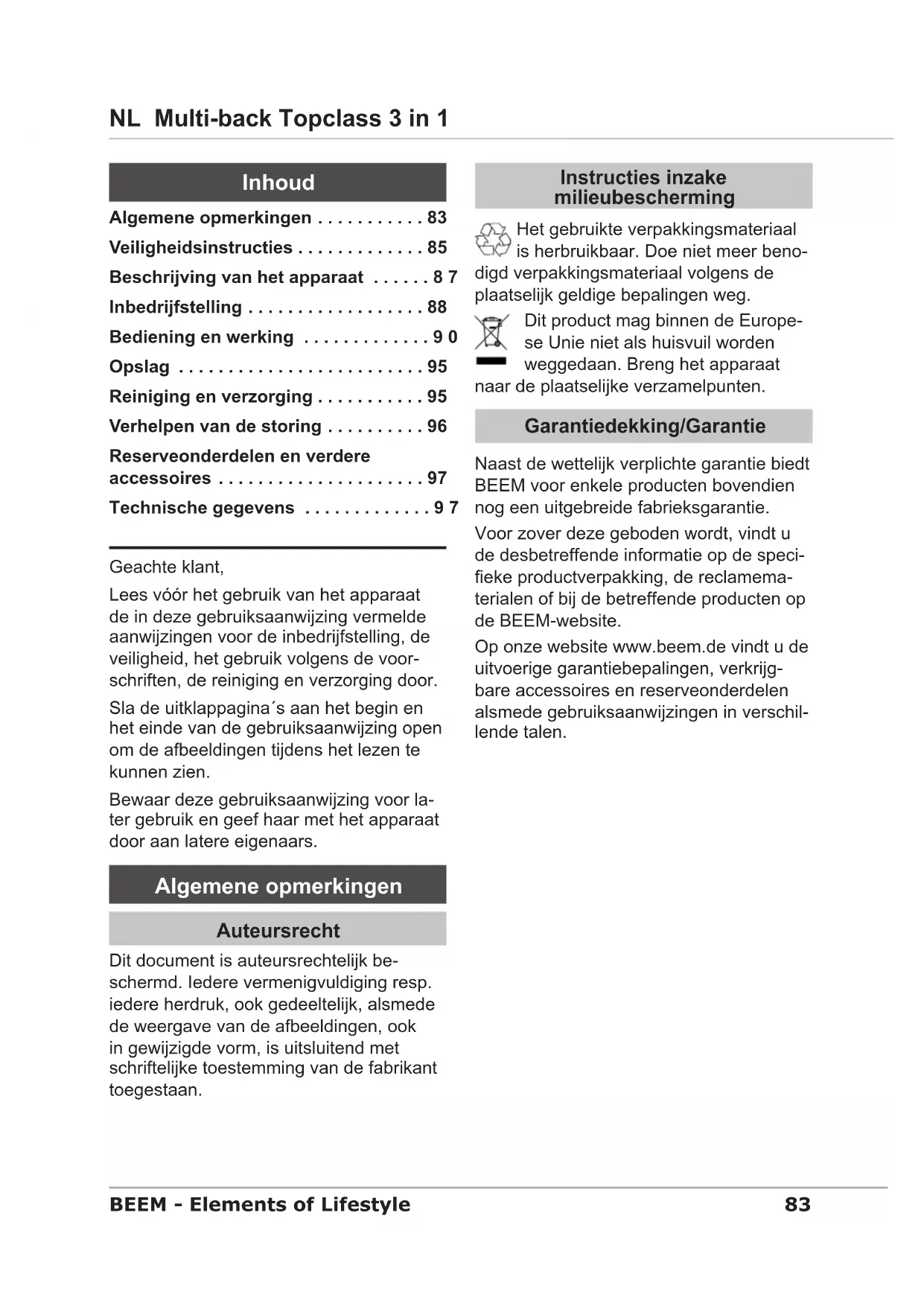 Vind de handleiding van het apparaat gratis MultiBack TopClass BEEM in PDF-formaat.