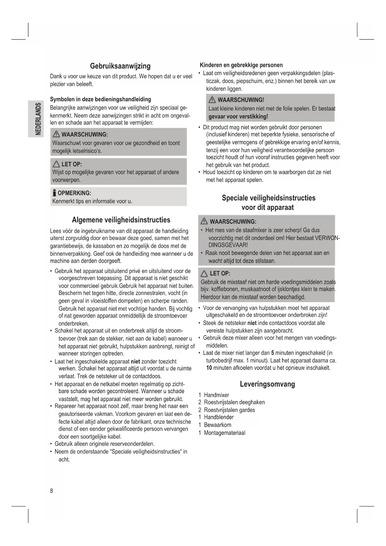 • Het mes van de staafmixer is zeer scherp! Ga dus