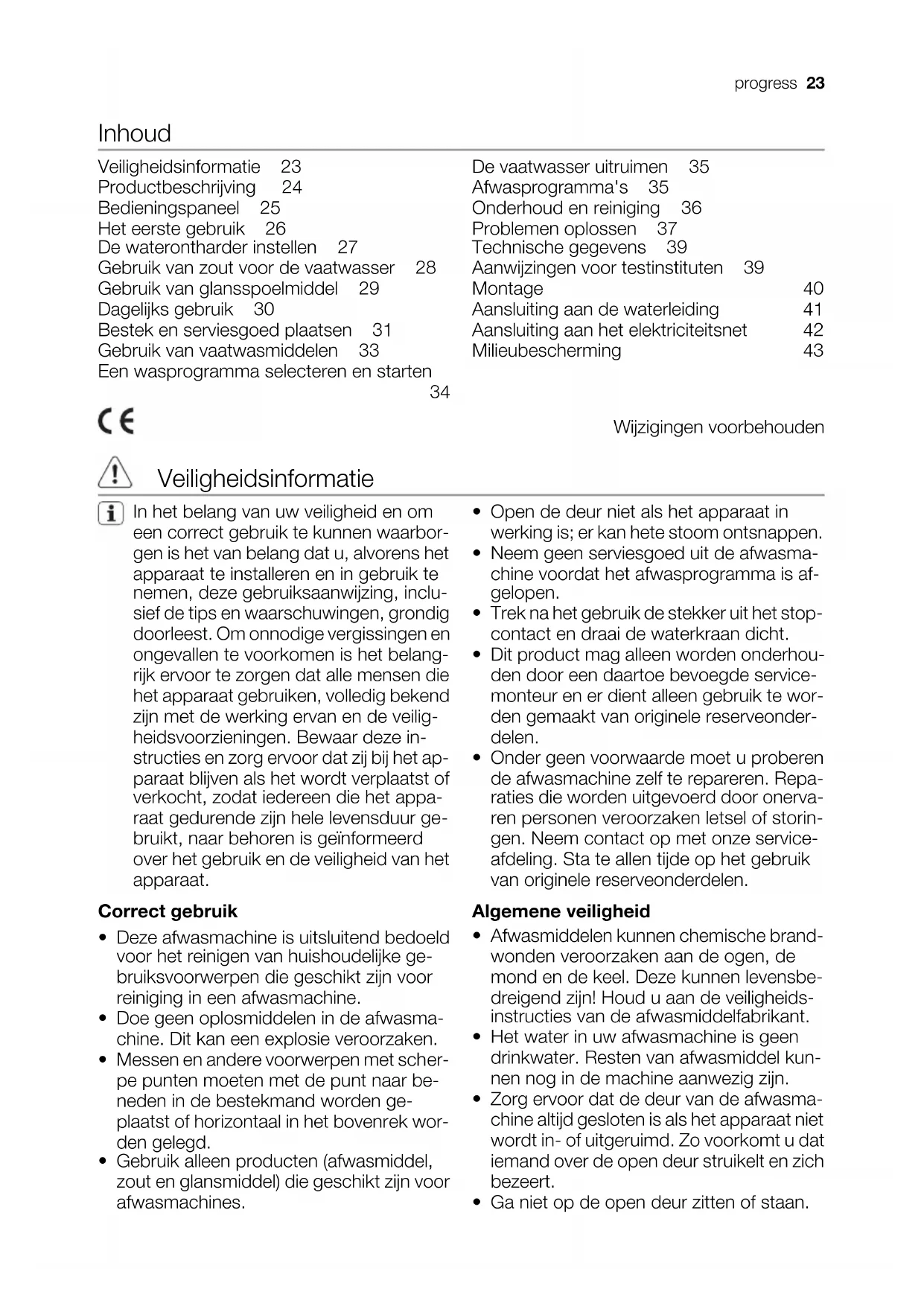 - Das Türschloss entfernen. Damit ver- hindern Sie, dass spielende Kinder sich einschließen und gefährden kön- nen. 22 progressInhoud Veiligheidsinformatie 23 Productbeschrijving 24 Bedieningspaneel 25 Het eerste gebruik 26 De waterontharder instellen 27 Gebruik van zout voor de vaatwasser 28 Gebruik van glansspoelmiddel 29 Dagelijks gebruik 30 Bestek en serviesgoed plaatsen 31 Gebruik van vaatwasmiddelen 33 Een wasprogramma selecteren en starten