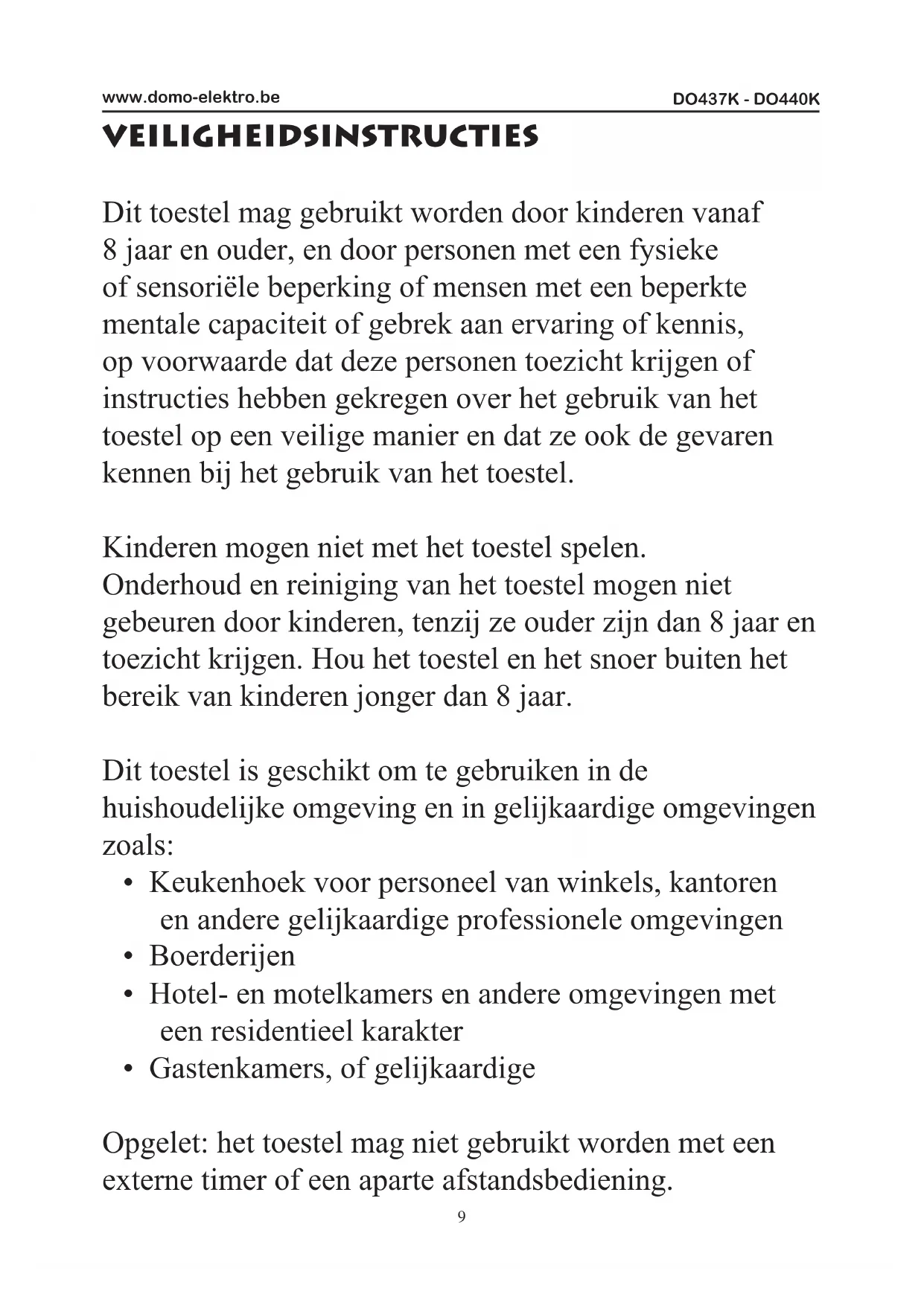 VEILIGHEIDSINSTRUCTIES Dit toestel mag gebruikt worden door kinderen vanaf