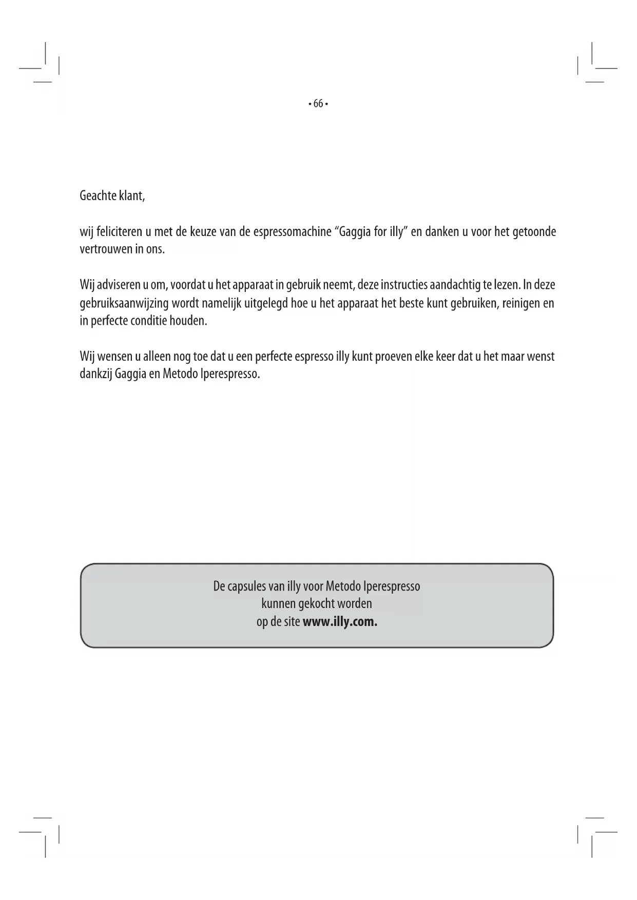 wij feliciteren u met de keuze van de espressomachine “Gaggia for illy” en danken u voor het getoonde