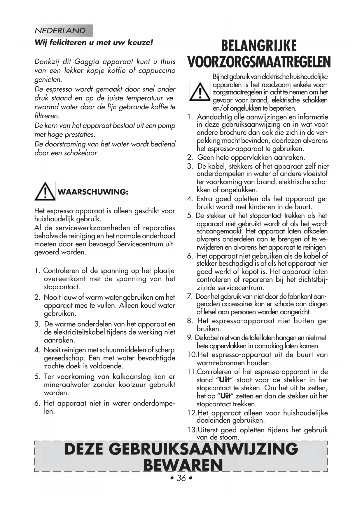 DEZE GEBRUIKSAANWIJZING BEWAREN BELANGRIJKE VOORZORGSMAATREGELENNEDERLAND