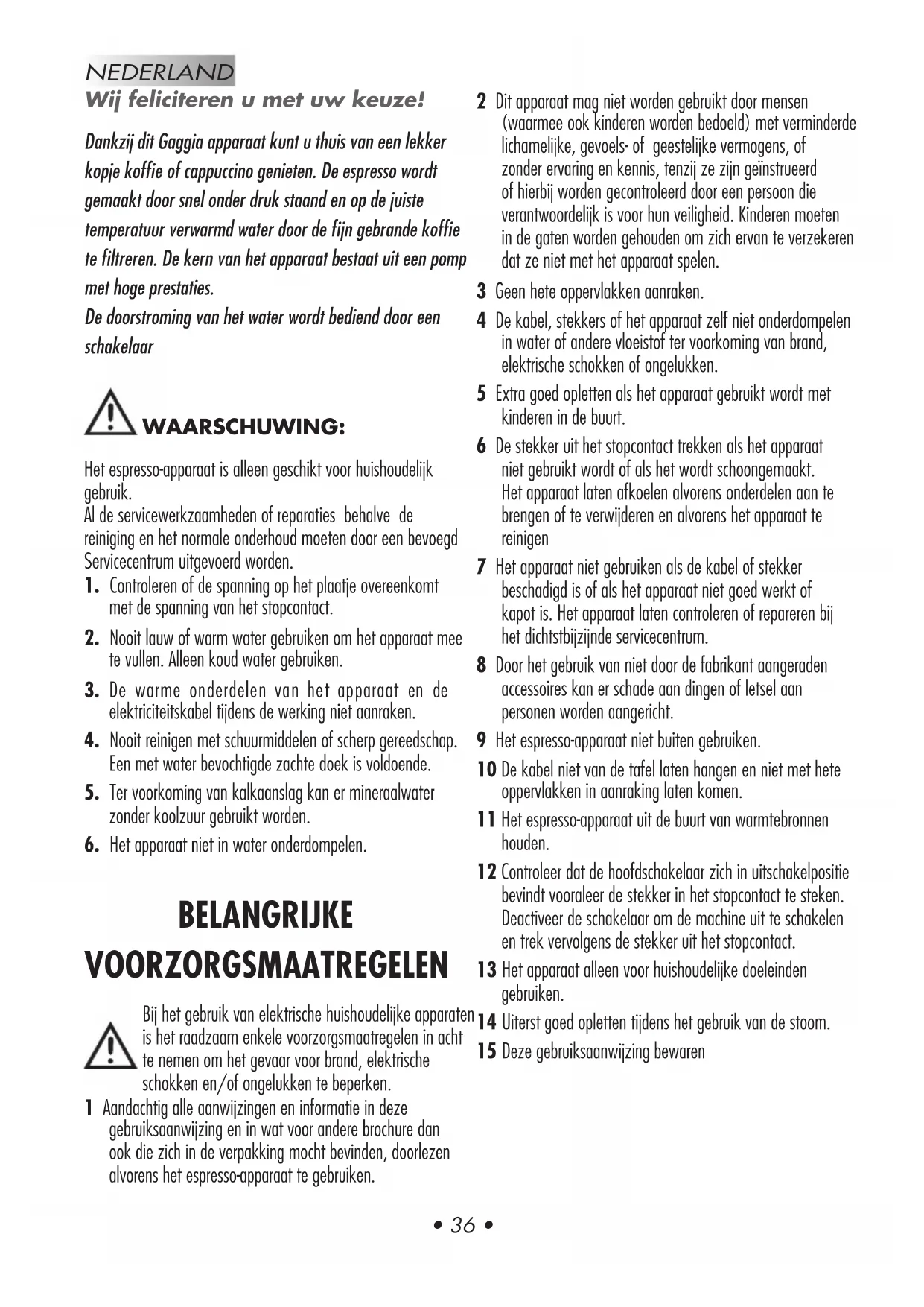 GEBRUIKSAANWIJZING Espresso Pure GAGGIA