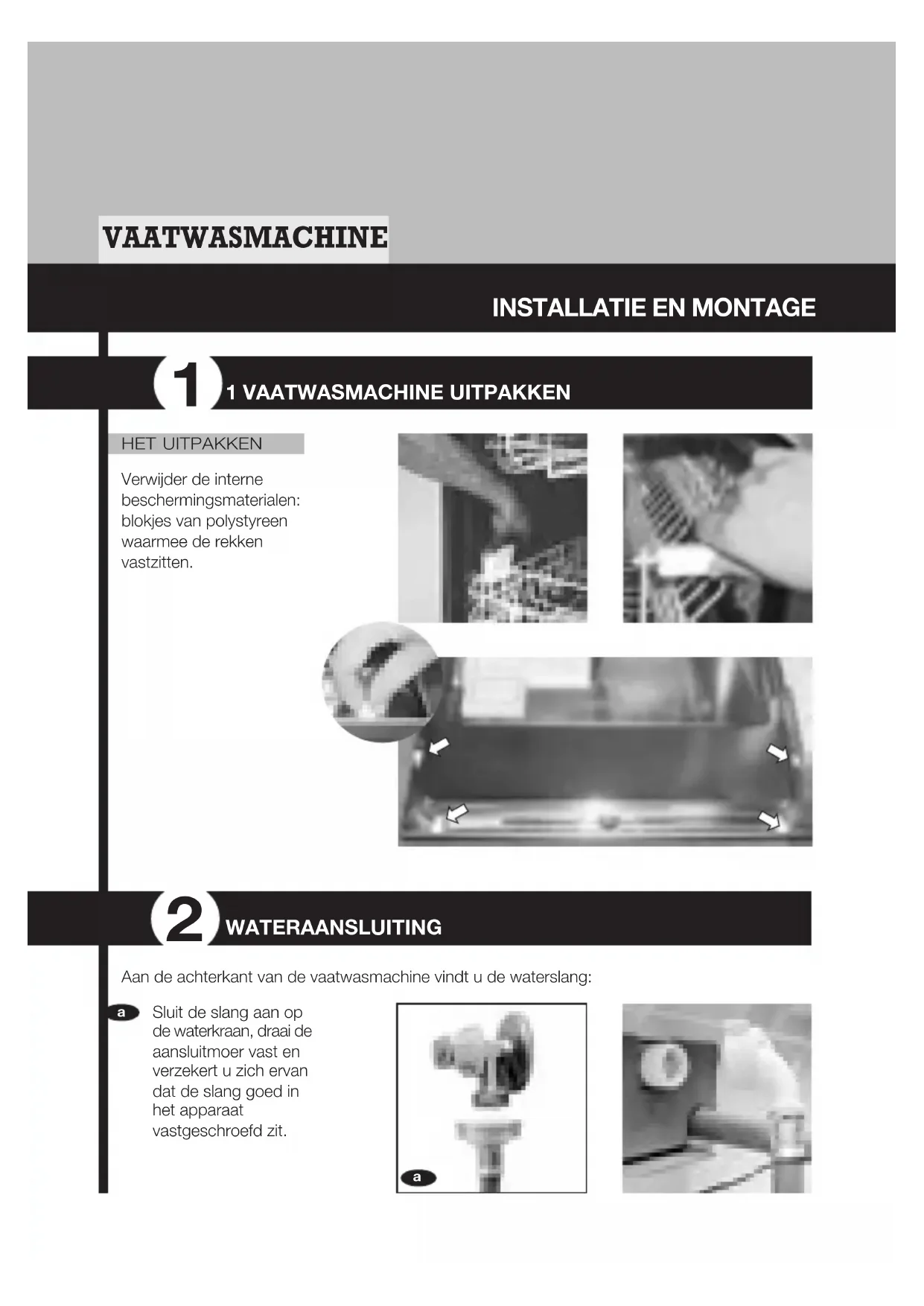 1. Open voorzichtig de deur van de vaatwasmachine.