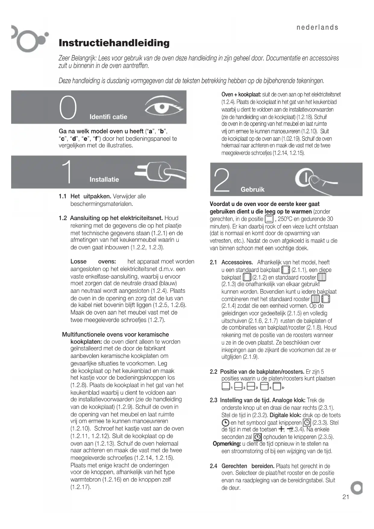 Zeer Belangrijk: Lees voor gebruik van de oven deze handleiding in zijn geheel door. Documentatie en accessoires