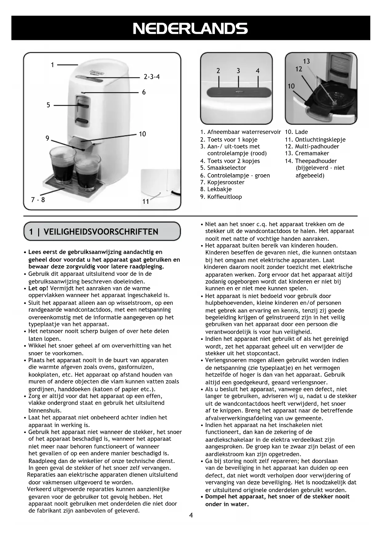 KOFFIEPADMACHINE - KAFFEEPADMASCHINE - MACHINE À CAFÉ DE DOSETTES - COFFEEPADMACHINE GEBRUIKSAANWIJZING - GEBRAUCHSANLEITUNG MODE D’EMPLOI - INSTRUCTION MANUAL2NEDERLANDS DEUTSCH FRANÇAIS Klein huishoudelijke apparaten horen niet in de