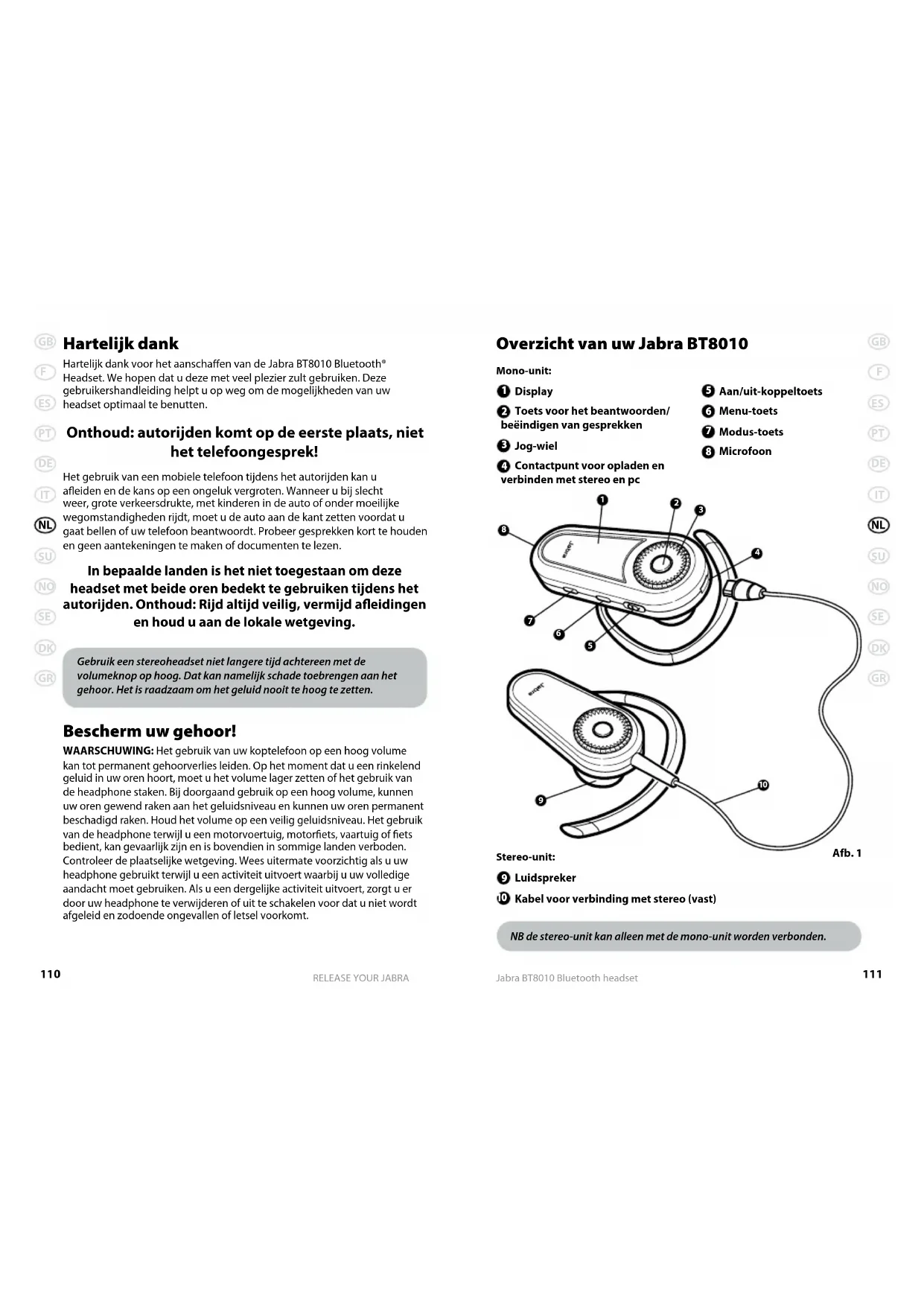Hartelijk dank voor het aanschaen van de Jabra BT8010 Bluetooth®