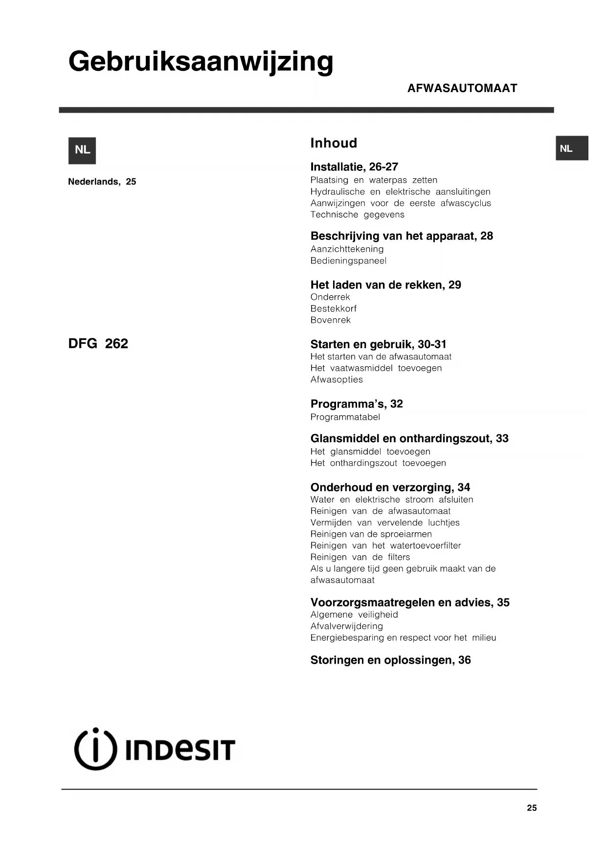 DFG 262 S EU - Vaatwassers INDESIT - Gratis gebruiksaanwijzing en handleiding