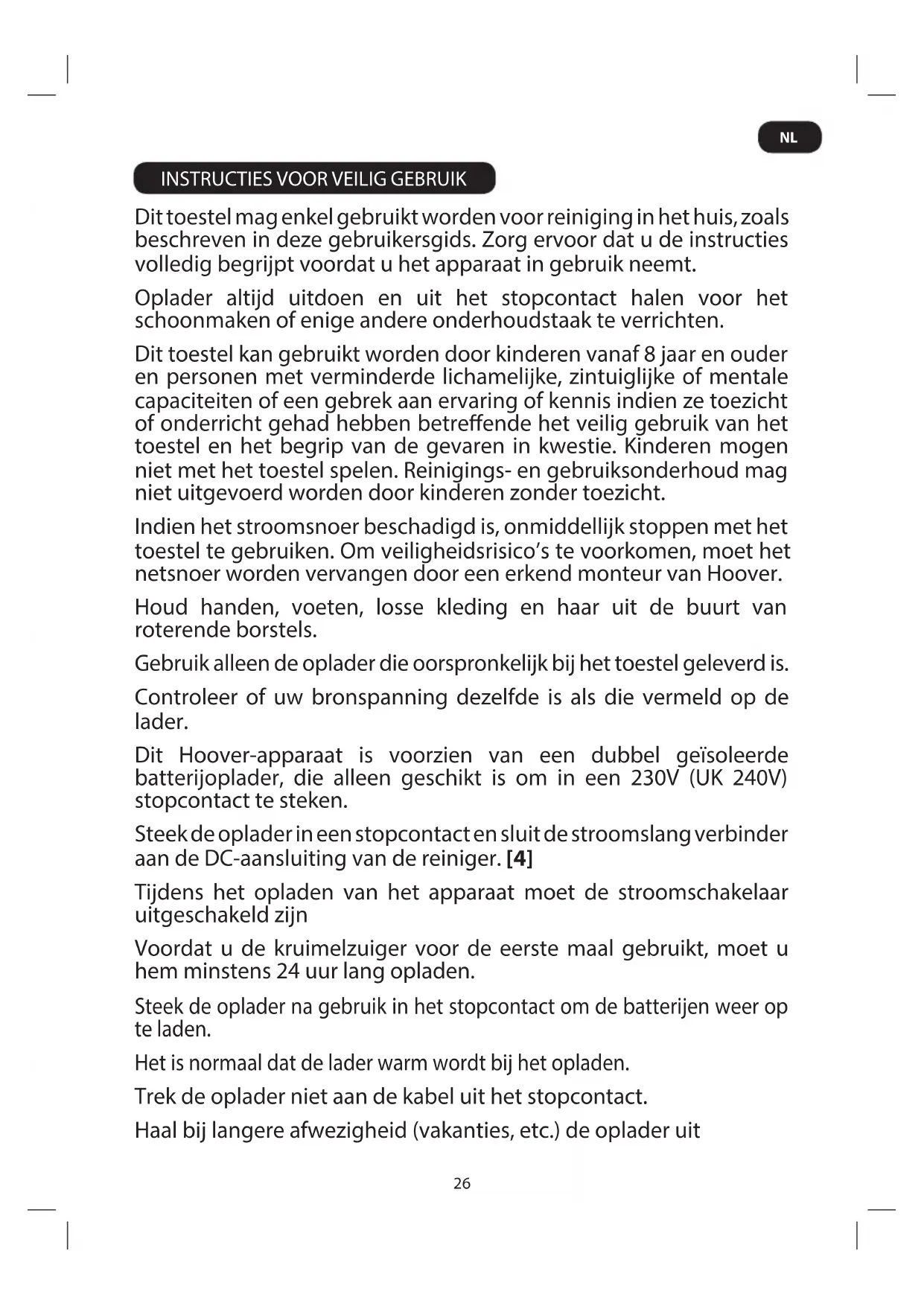 INSTRUCTIES VOOR VEILIG GEBRUIK Dit toestel mag enkel gebruikt worden voor reiniging in het huis, zoals