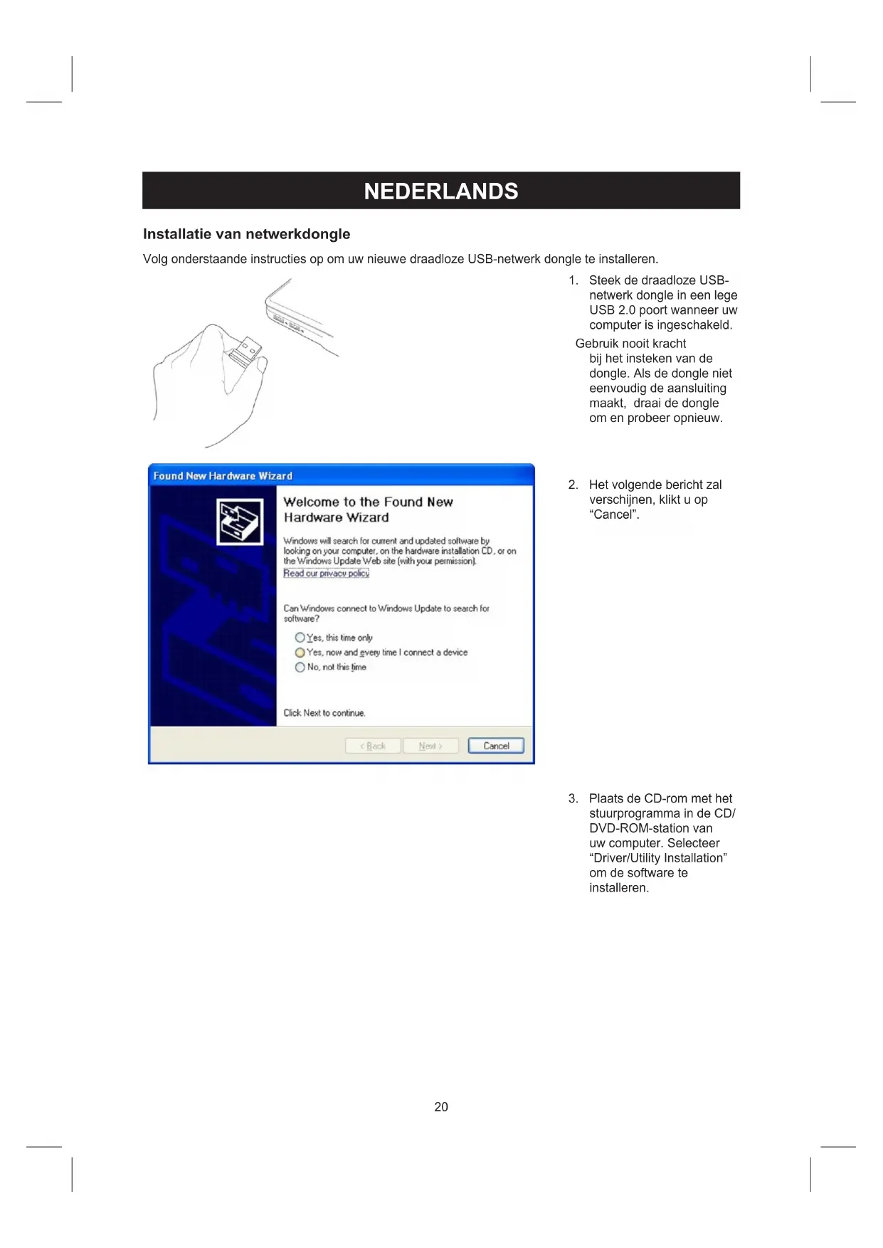 Volg onderstaande instructies op om uw nieuwe draadloze USB-network dongte installeren.