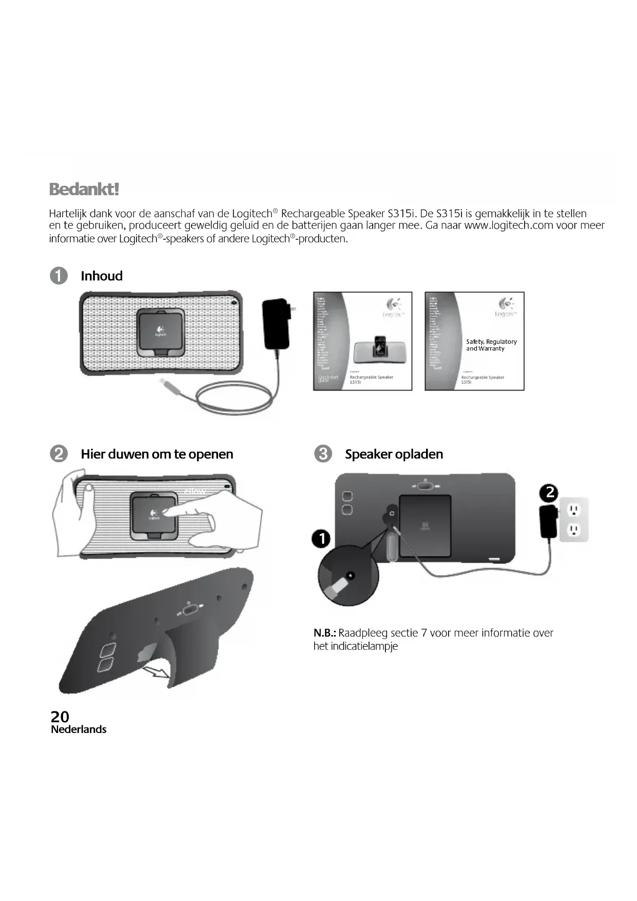 Hartelijk dank voor de aanschaf van de Logitech® Rechargeable Speaker S315i. De S315i is gemakkelijk in te stellen