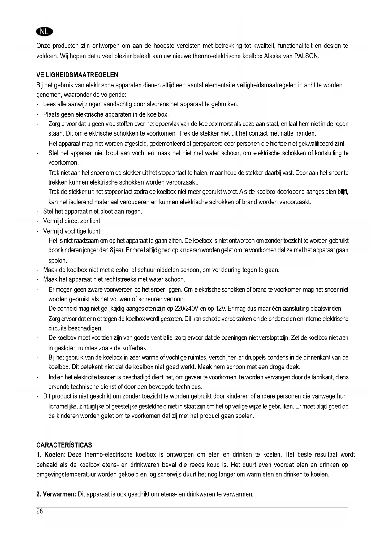Onze producten zijn ontworpen om aan de hoogste vereisten met betrekking tot kwaliteit, functionaliteit en design te voldoen. Wij hopen dat u veel plezier beleeft aan uw nieuwe thermo-elektrische koelbox Alaska van PALSON.