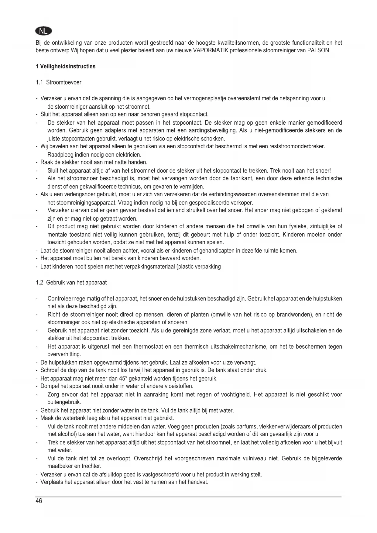 Bij de ontwikkeling van onze producten wordt gestreefd naar de hoogste kwaliteitsnormen, de grootste functionaliteit en het beste ontwerp Wij hopen dat u veel plezier beleeft aan uw nieuwe VAPORMATIK professionele stoomreiniger van PALSON.
