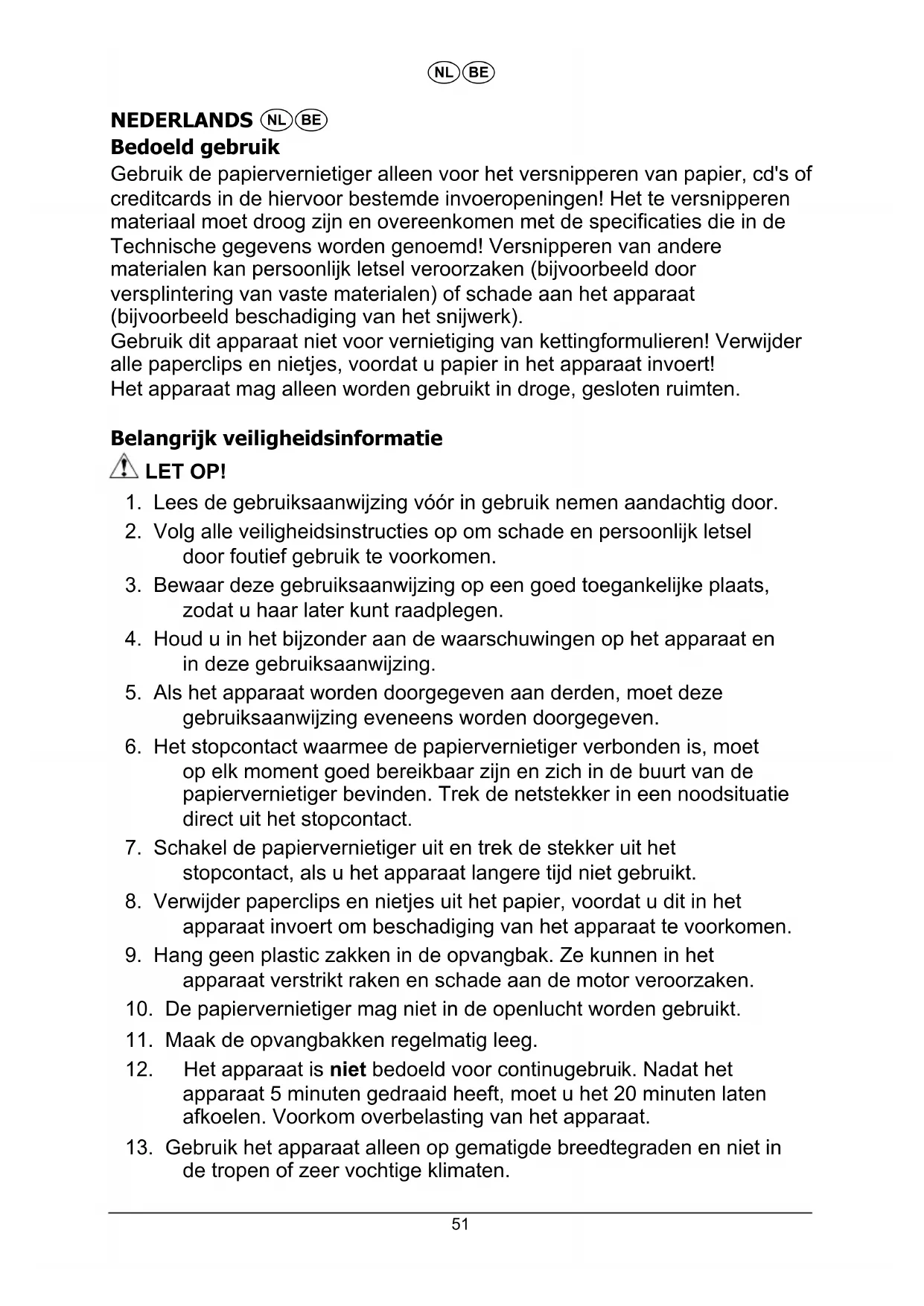 10. De papiervernietiger mag niet in de openlucht worden gebruikt.