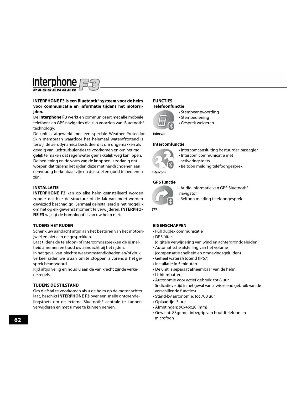 De Interphone F3 werkten communiceert met alle mobiele telefoons en GPS navigaties die zijn voorzien van Bluetooth® technology.
