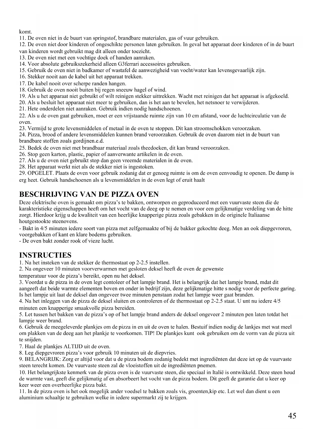 GEBRUIKSAANWIJZING Pizza Express Delizia G3 Ferrari