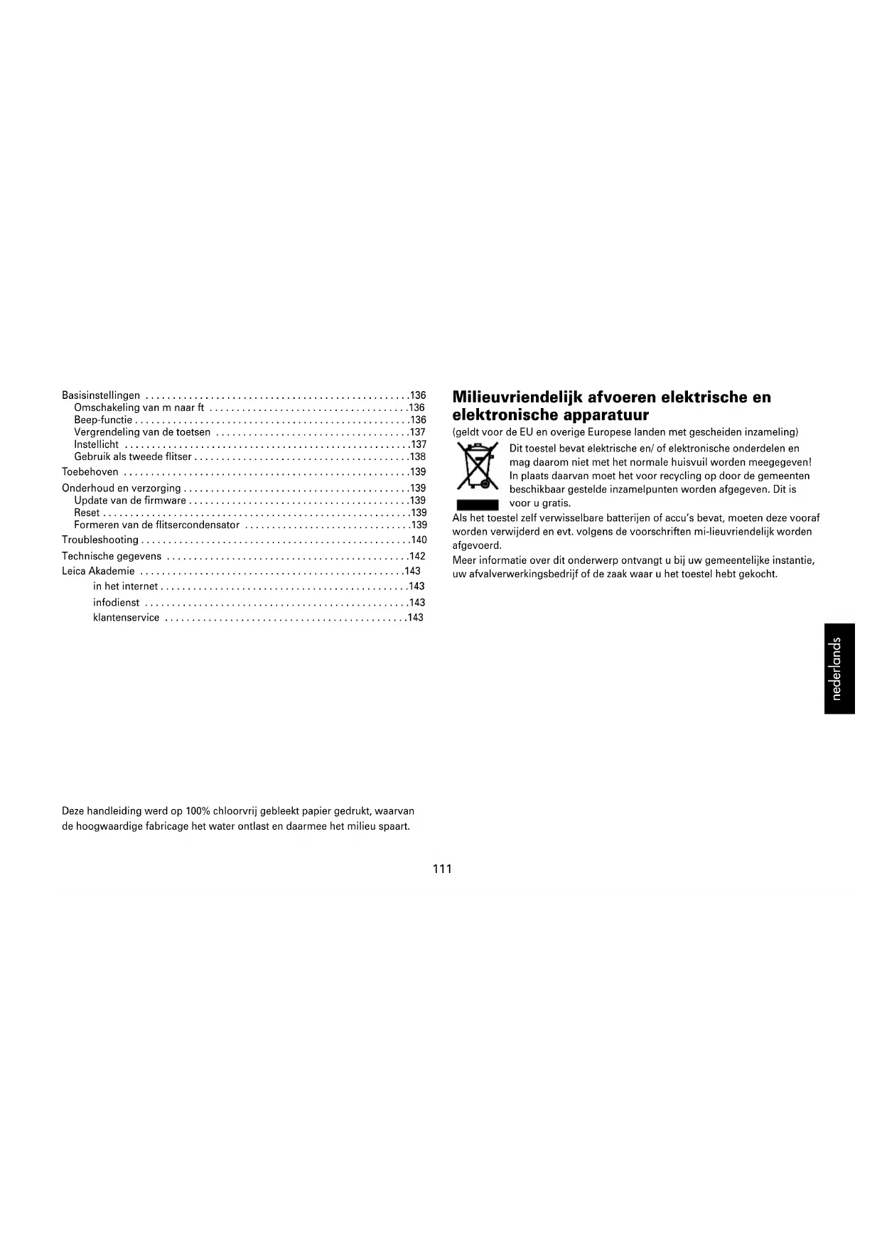 Milieuvriendelijk afvoeren elektrische en elektronische apparatuur . . . . . . .111