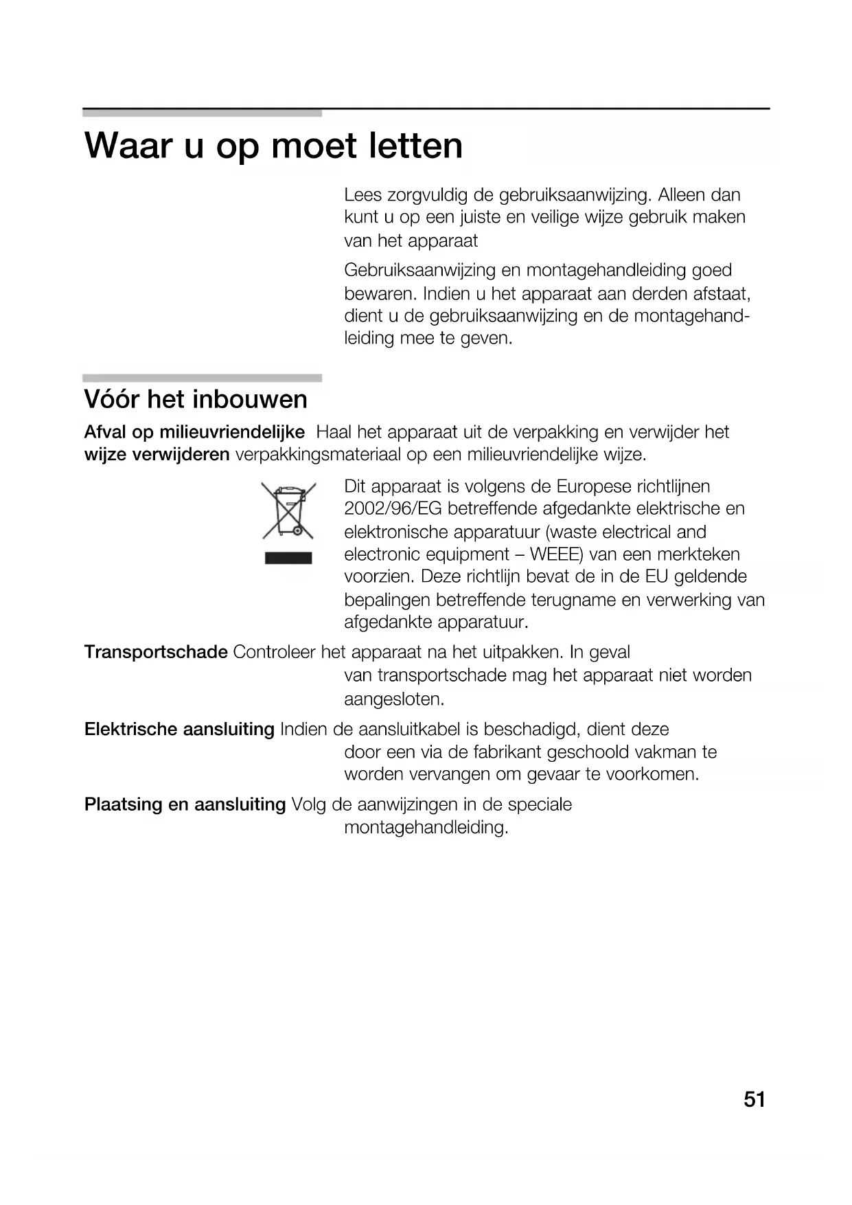 Vóór het inbouwen . . . . . . . . . . . . . . . . . . . . . . . . . 51