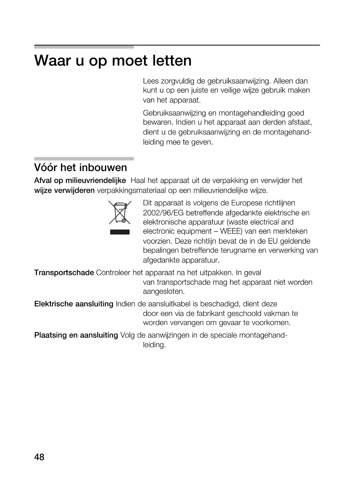 Vóór het inbouwen . . . . . . . . . . . . . . . . . . . . . . . . . 48