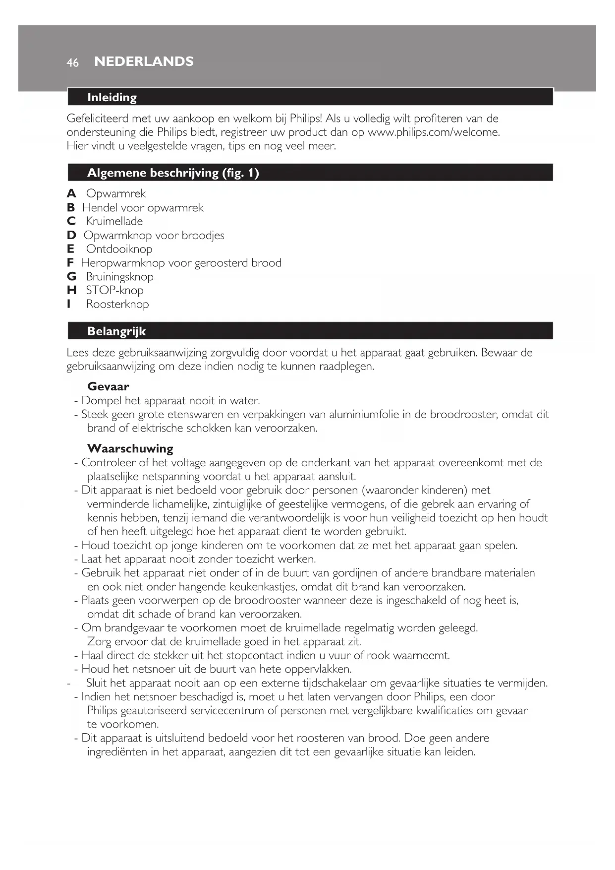 - Dit apparaat is uitsluitend bedoeld voor het roosteren van brood. Doe geen andere