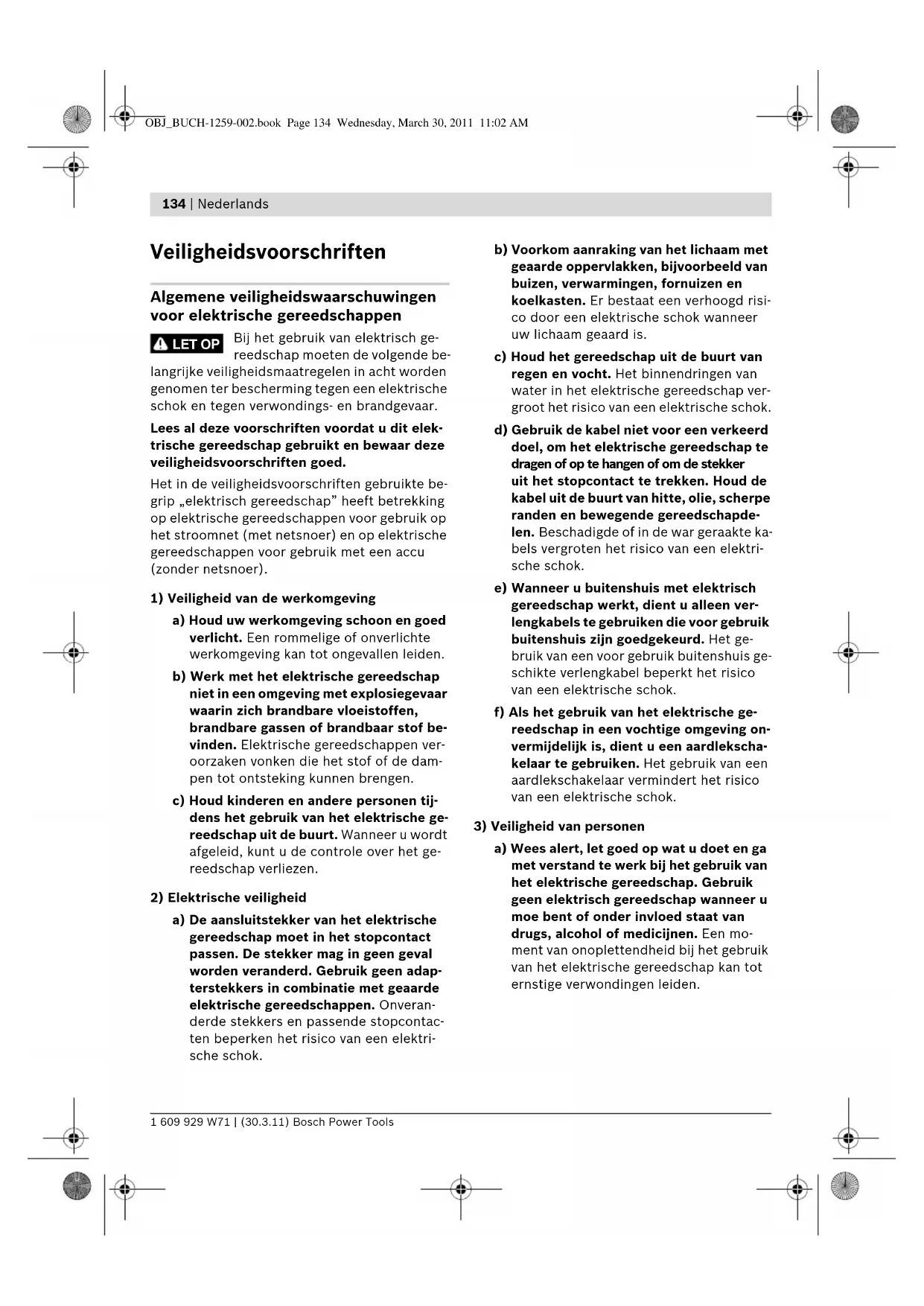 OBJ_BUCH-1259-002.book Page 133 Wednesday, March 30, 2011 11:02 AM134 | Nederlands 1 609 929 W71 | (30.3.11) Bosch Power Tools nl