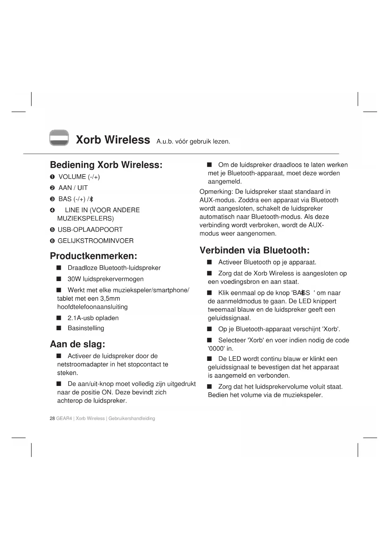 GEBRUIKSAANWIJZING Xorb Wireless GEAR4