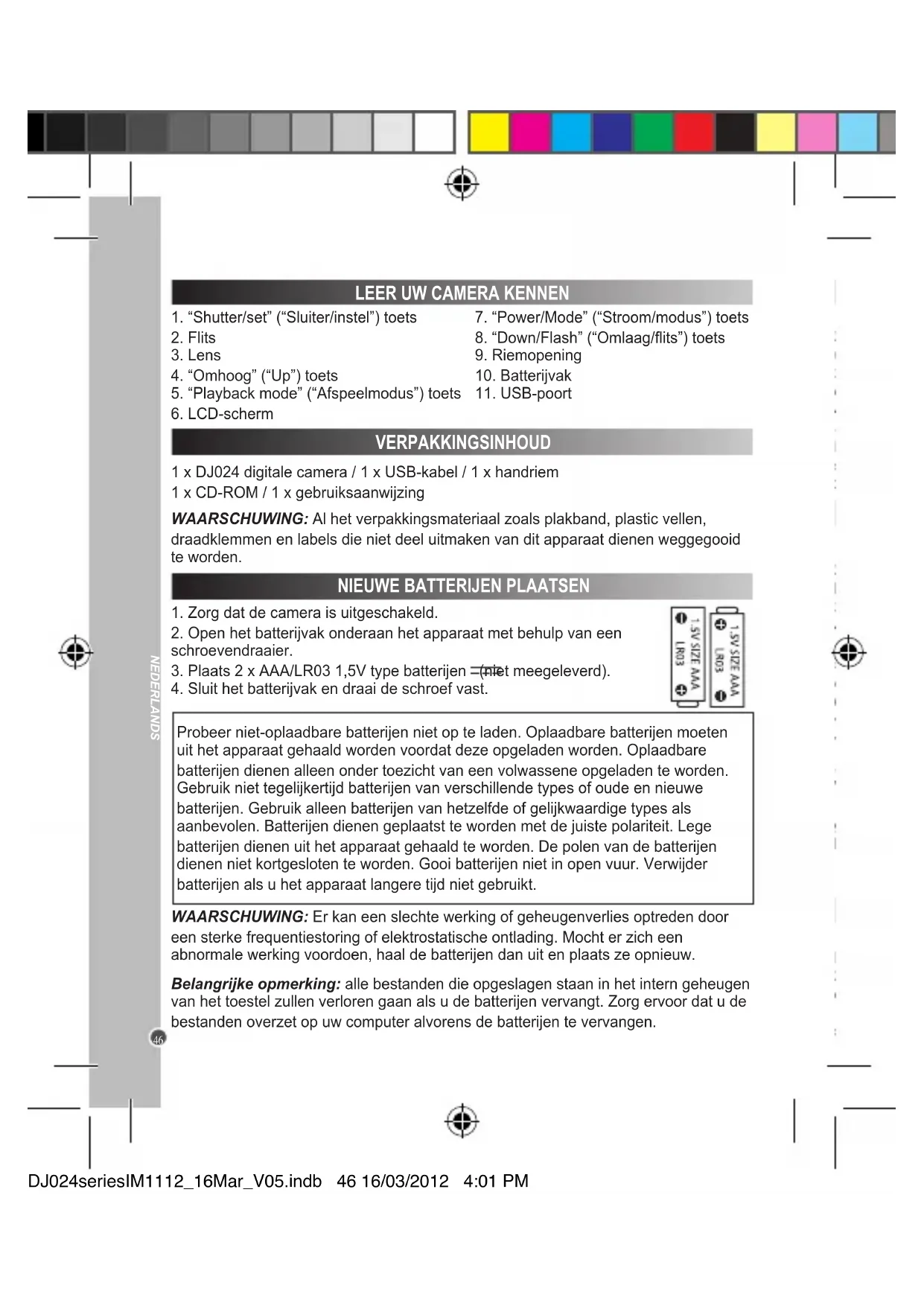 LEER UW CAMERA KENNEN NIEUWE BATTERIJEN PLAATSEN VERPAKKINGSINHOUD