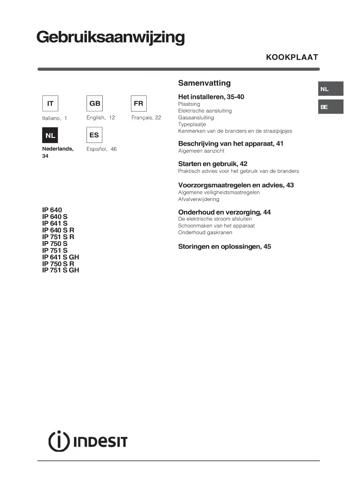 GEBRUIKSAANWIJZING IP 751 S AV R INDESIT