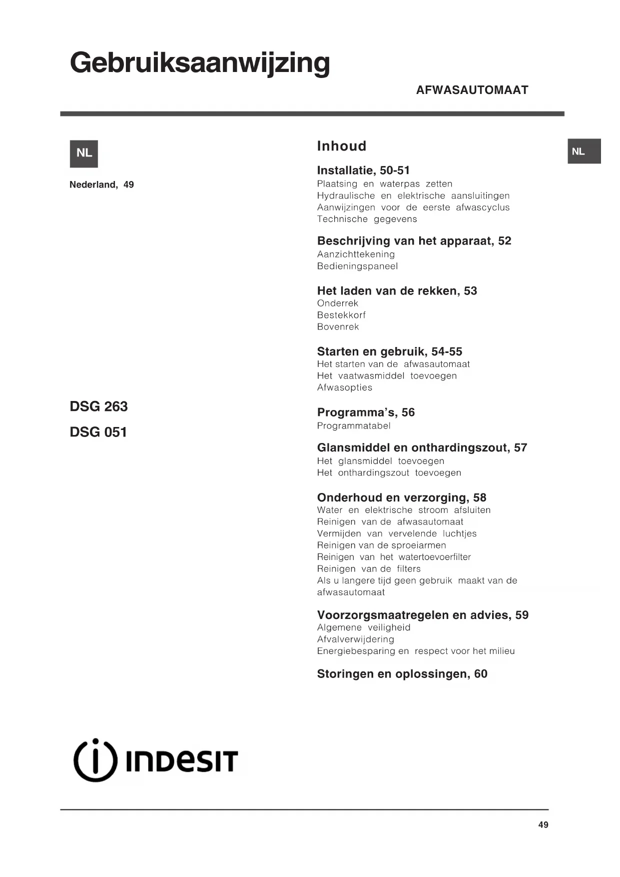 DSG 0531 EU - Vaatwassers INDESIT - Gratis gebruiksaanwijzing en handleiding