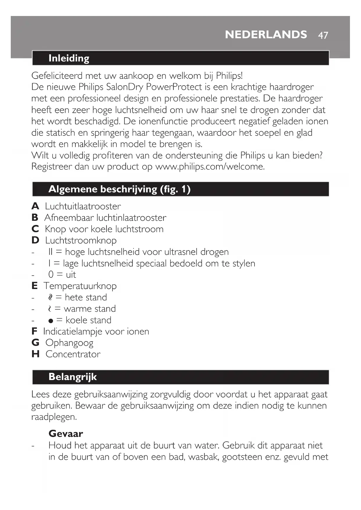 Dit apparaat is alleen bedoeld voor het drogen van hoofdhaar.