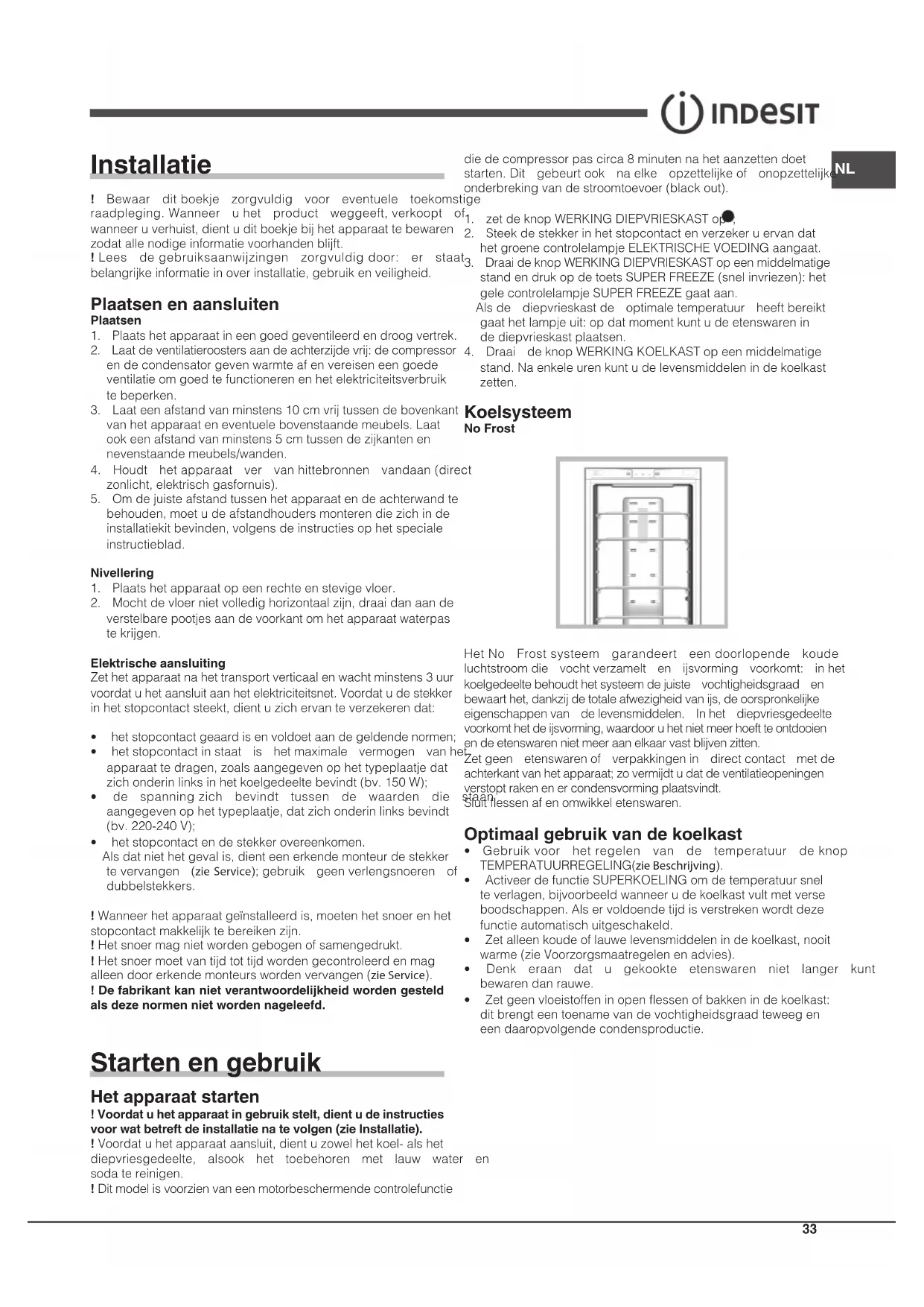 GEBRUIKSAANWIJZING BIAA 34 F SI INDESIT