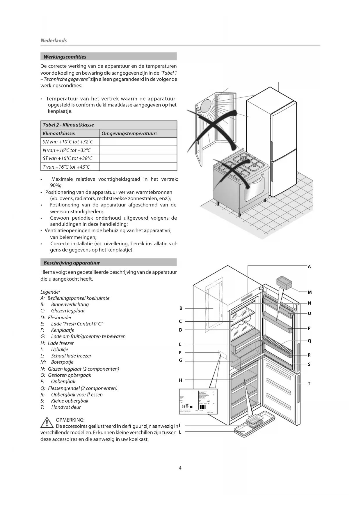 SN van +10°C tot +32°C N van +16°C tot +32°C ST van +16°C tot +38°C T van +16°C tot +43°C