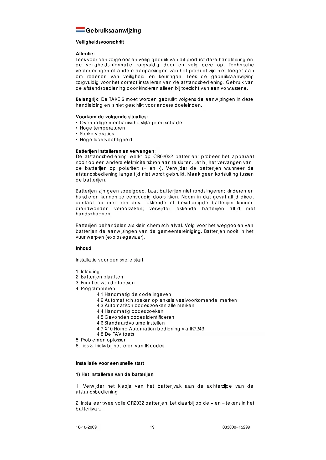 GEBRUIKSAANWIJZING TAKE 6 IR EBODE