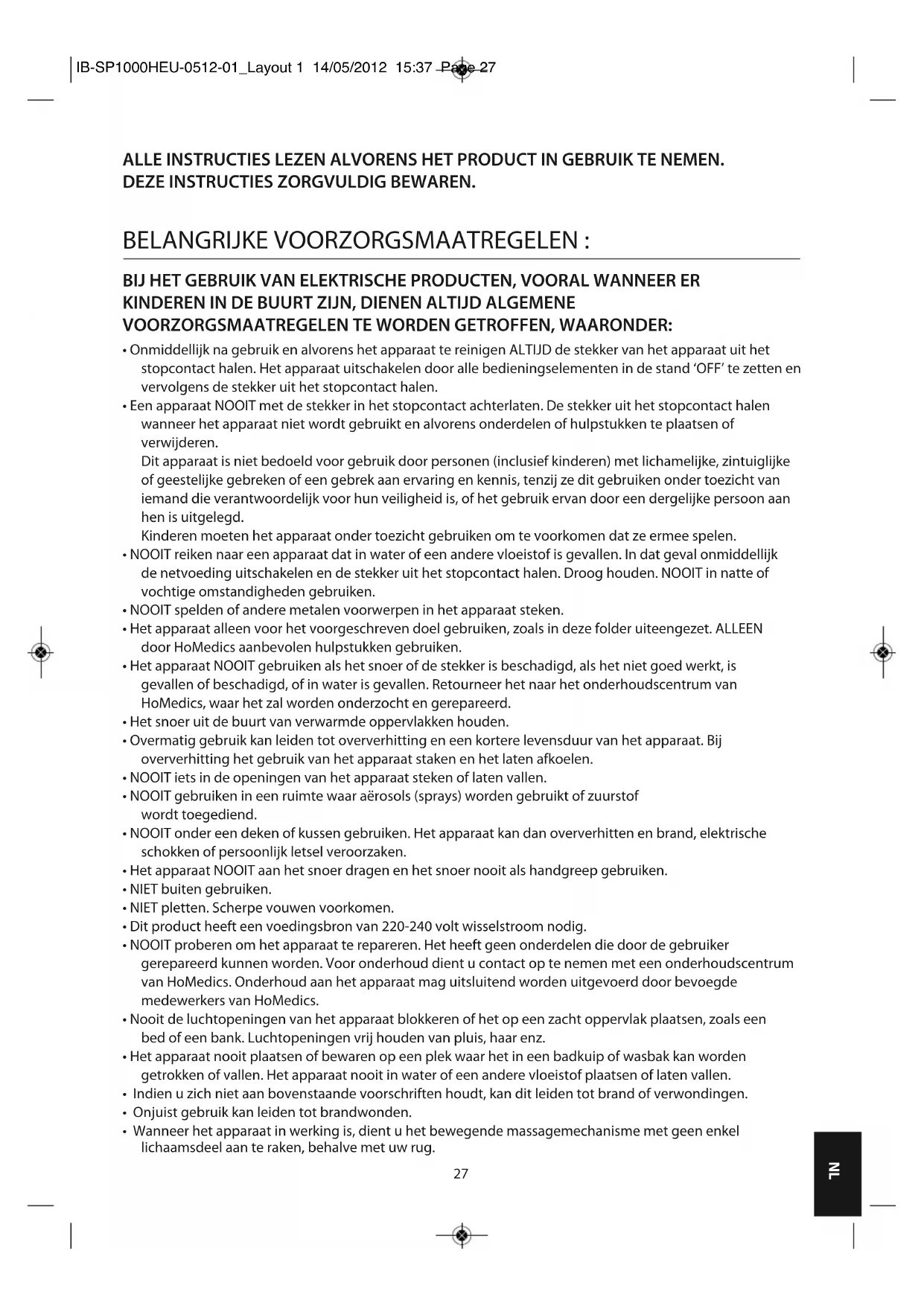 GEBRUIKSAANWIJZING SP1000HEU HOMEDICS