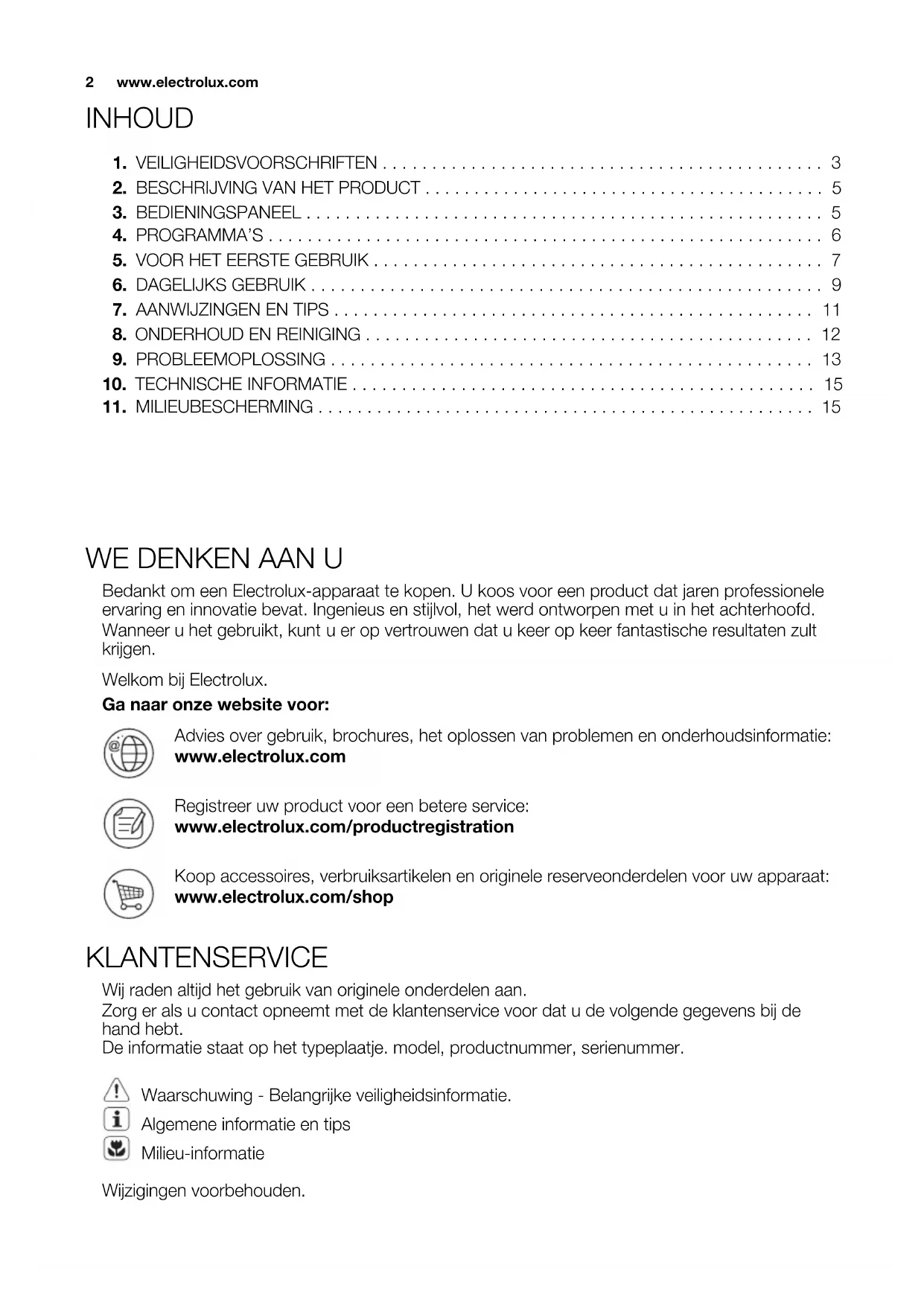 WE DENKEN AAN U Bedankt om een Electrolux-apparaat te kopen. U koos voor een product dat jaren professionele