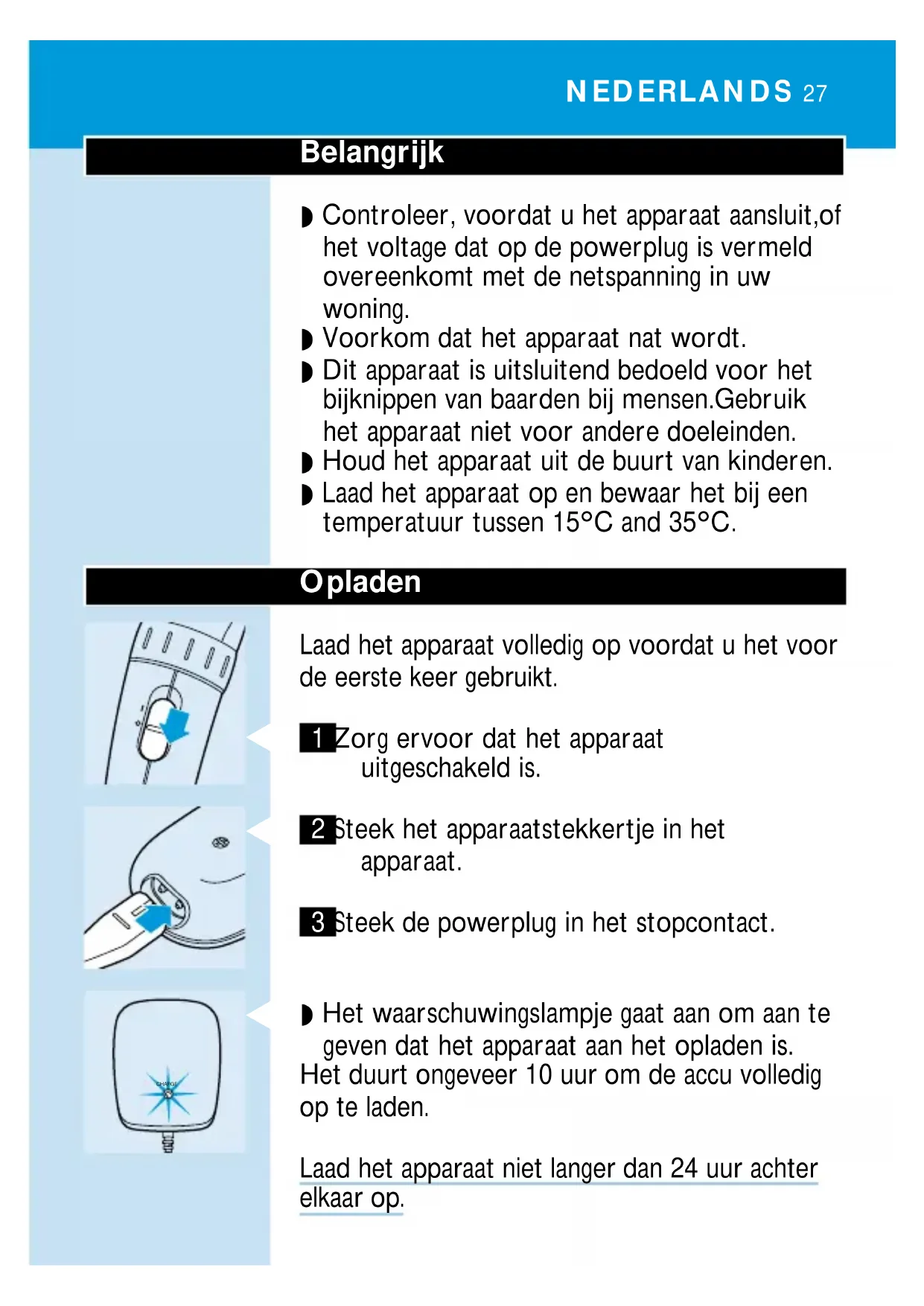 ◗ Dit apparaat kan niet op het elektriciteitsnet