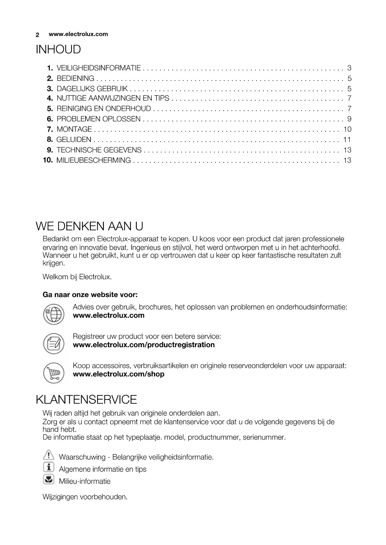 WE DENKEN AAN U Bedankt om een Electrolux-apparaat te kopen. U koos voor een product dat jaren professionele