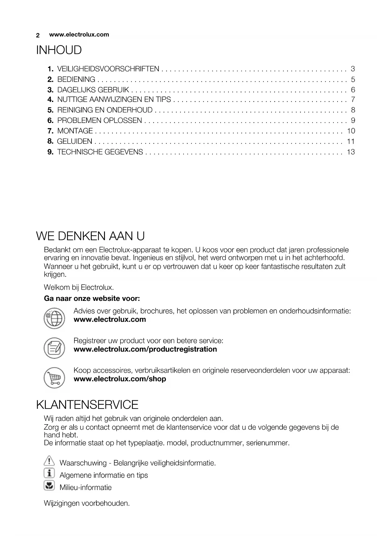 WE DENKEN AAN U Bedankt om een Electrolux-apparaat te kopen. U koos voor een product dat jaren professionele