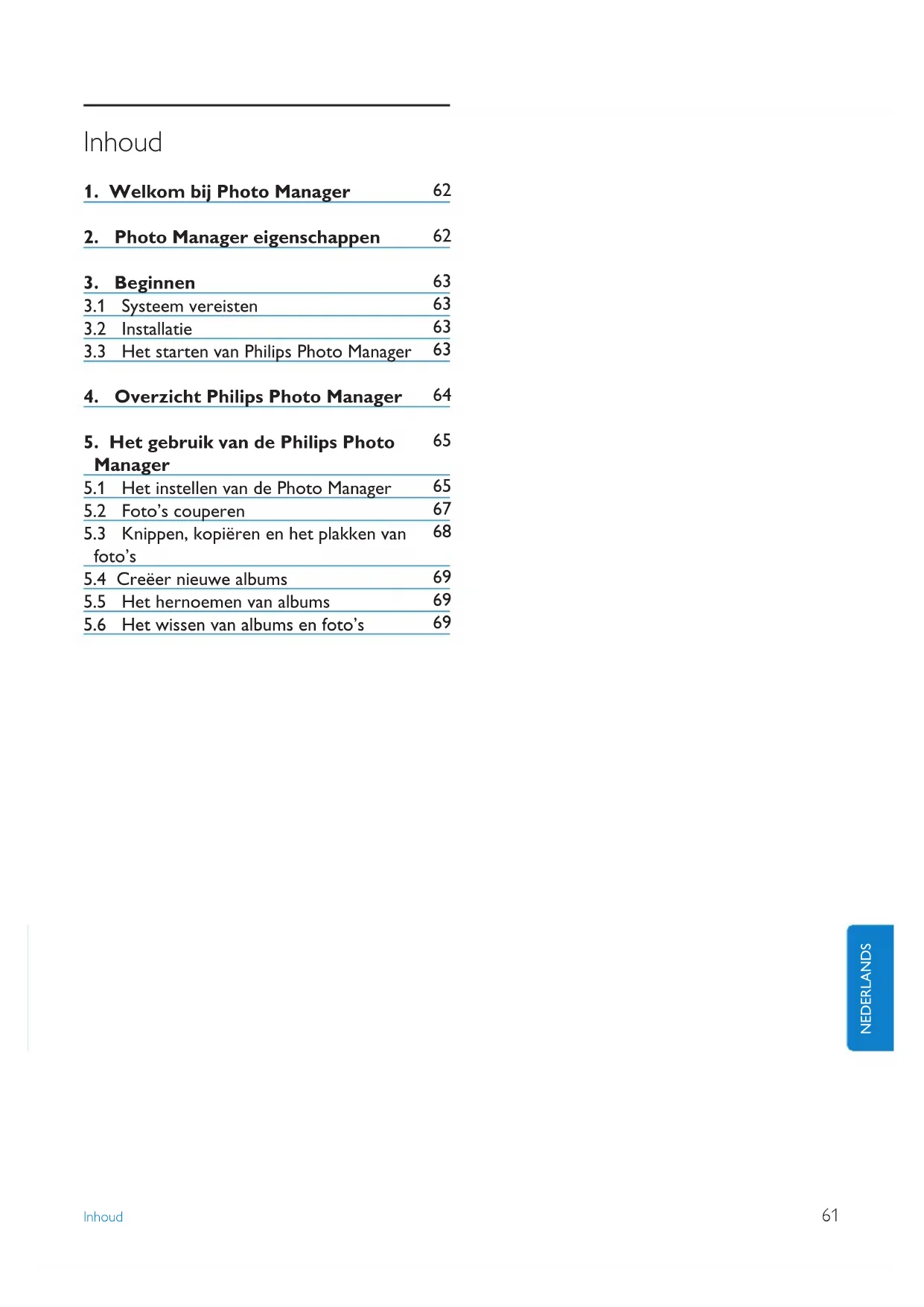 Het gebruik van de Philips Photo ManagerNEDERLANDS