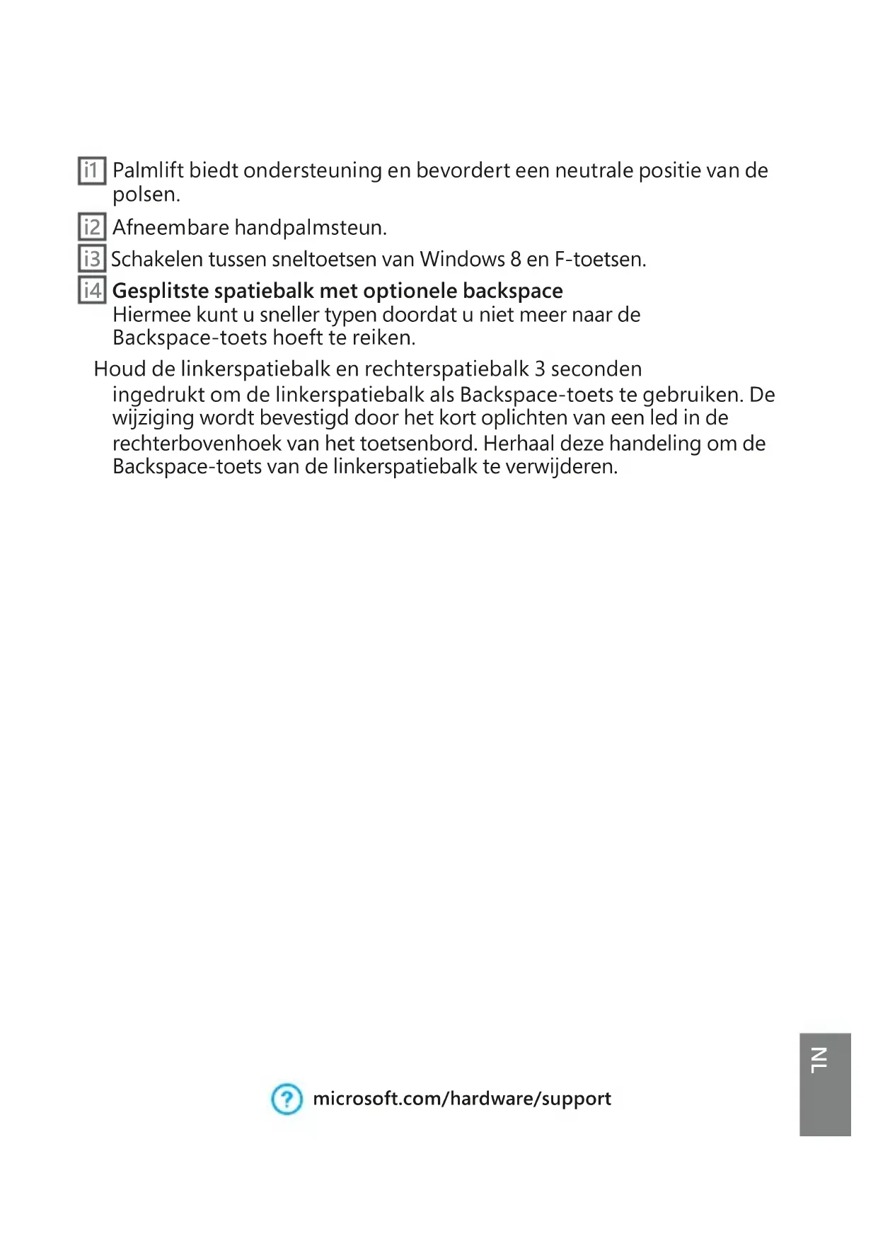 ingedrukt om de linkerspatiebalk als Backspace-toets te gebruiken. De